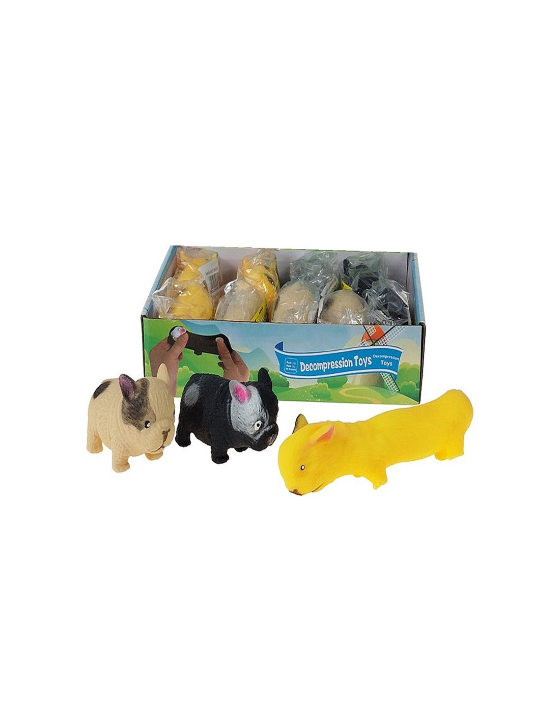 Kolorowy rozciągliwy gniotek w kształcie psa.