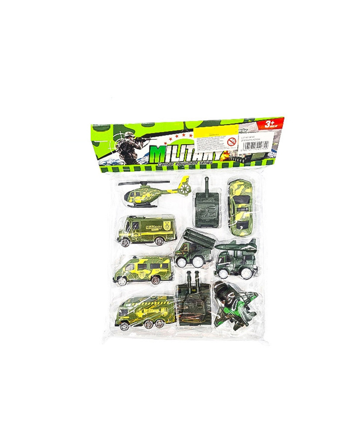 Zestaw kolorowych plastikowych pojazdów wojskowych.