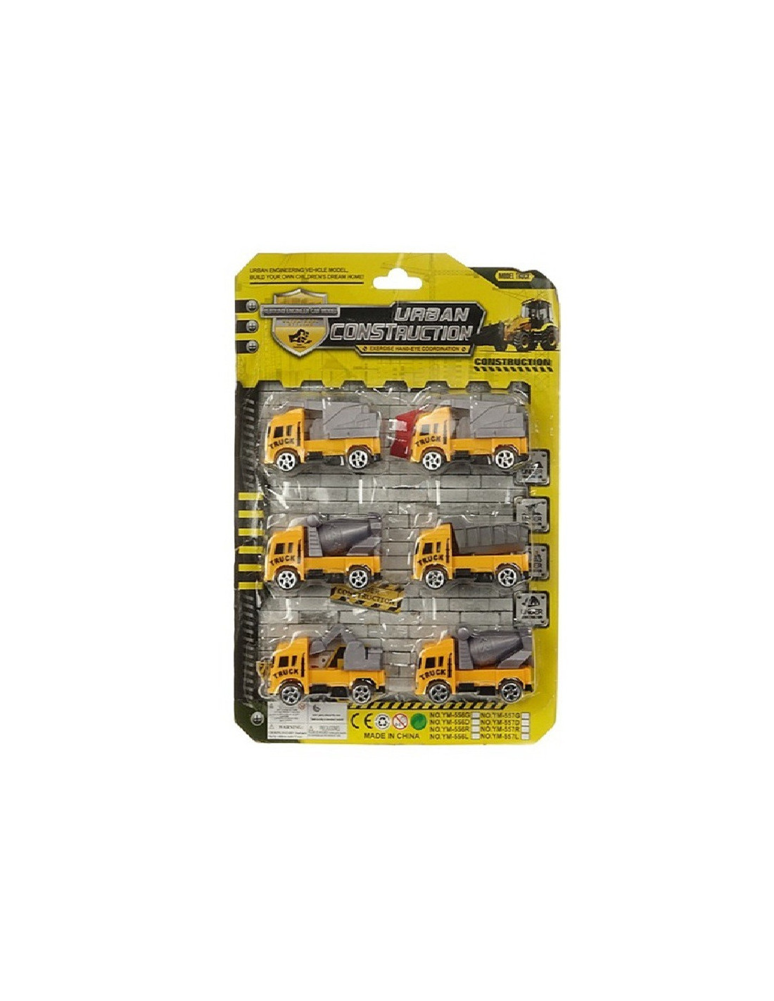 Zestaw kolorowych plastikowych pojazdów budowlanych.