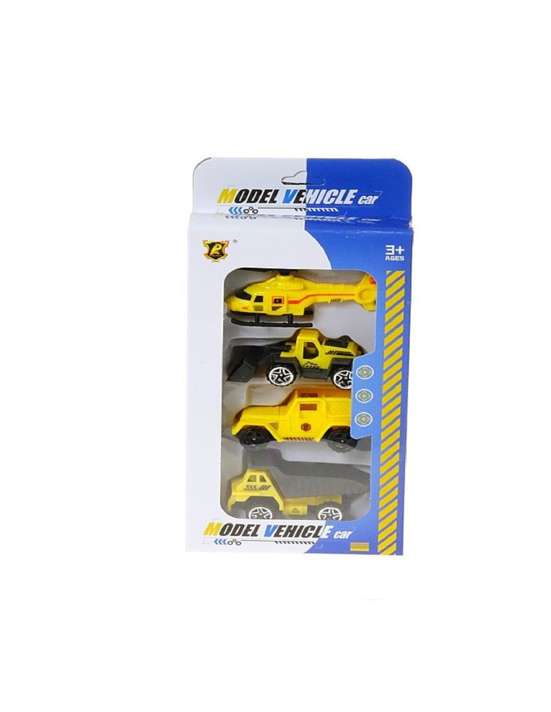 Zestaw kolorowych plastikowych pojazdów funkcyjnych.