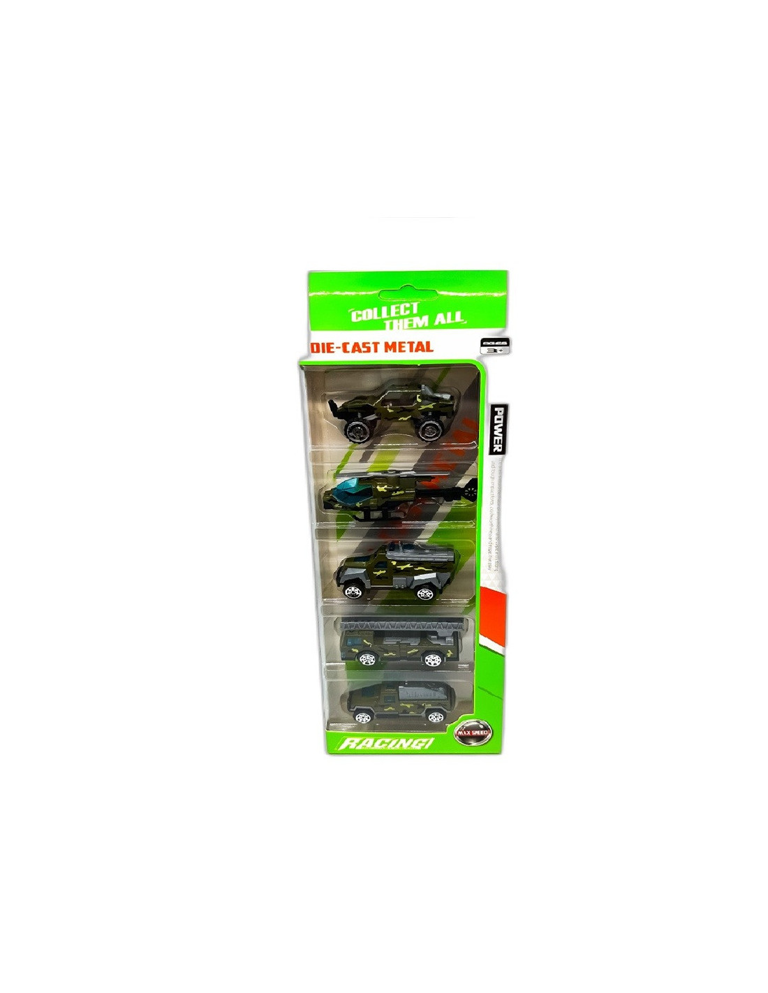 Zestaw kolorowych metalowych pojazdów wojskowych.