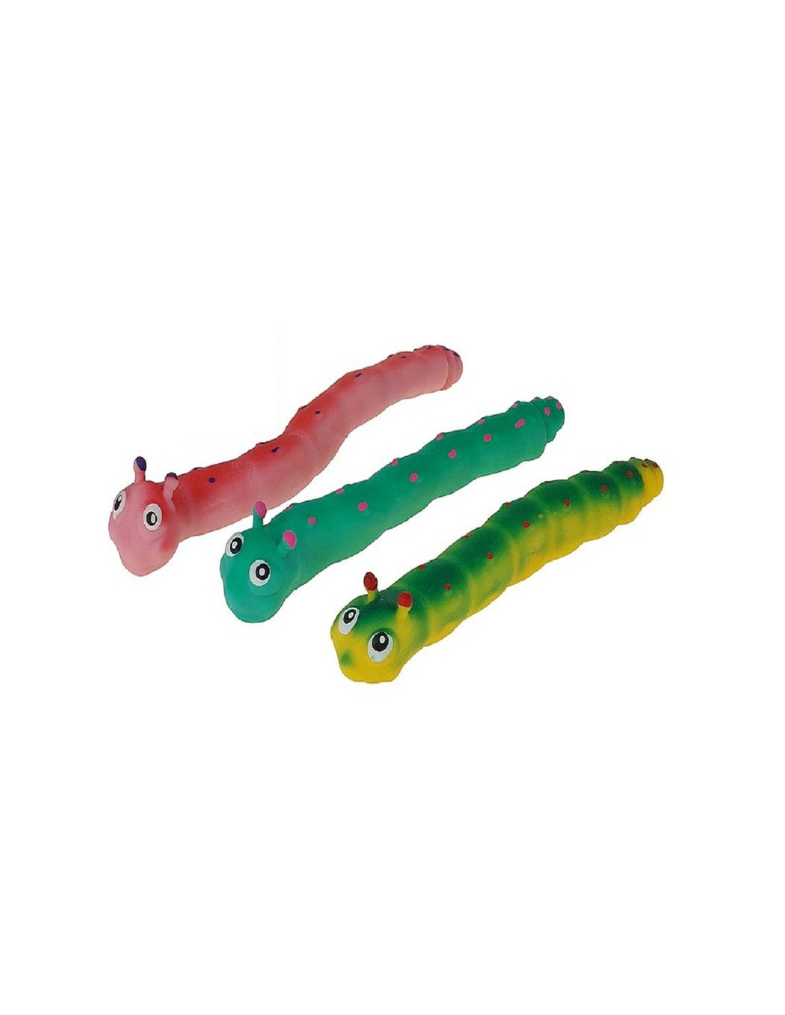 Kolorowy gniotek w kształcie gąsienicy o długości 15 cm.