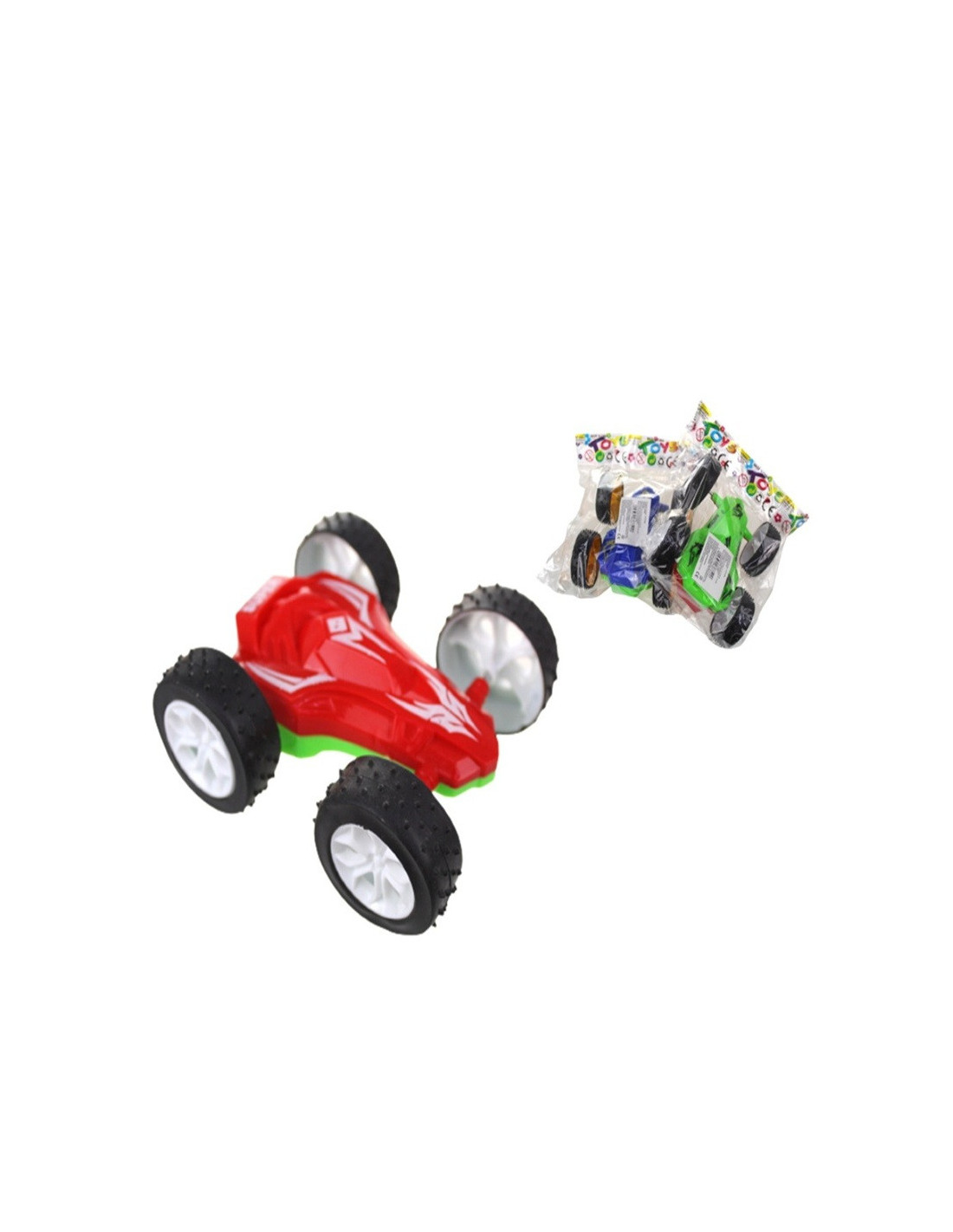 Kolorowy plastikowy dwustronny pojazd tzw. "przewrotka" z napędem.