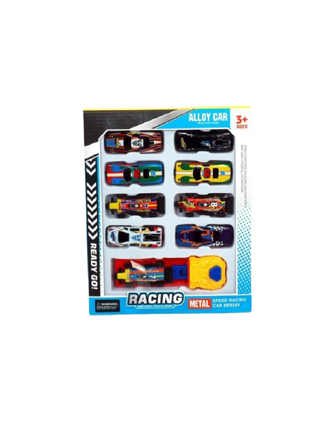 Zestaw kolorowych metalowych pojazdów sportowych z wyrzutnią.