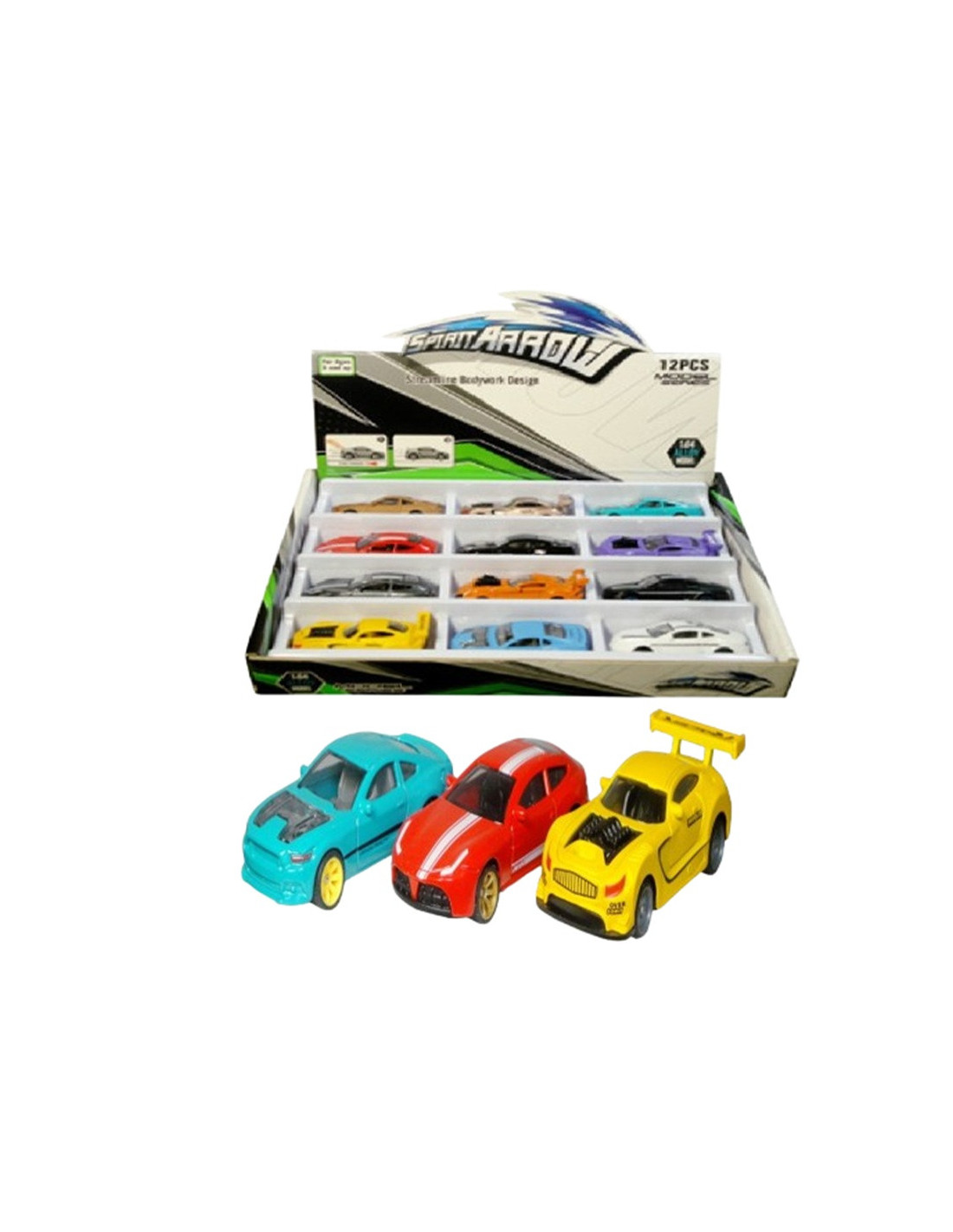 Zestaw kolorowych metalowych pojazdów z napędem.