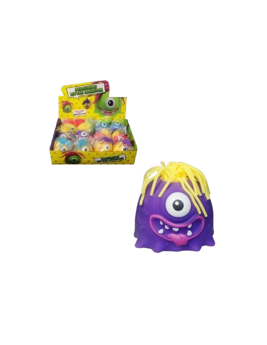 Kolorowy gniotek w kształcie stworka z włosami.