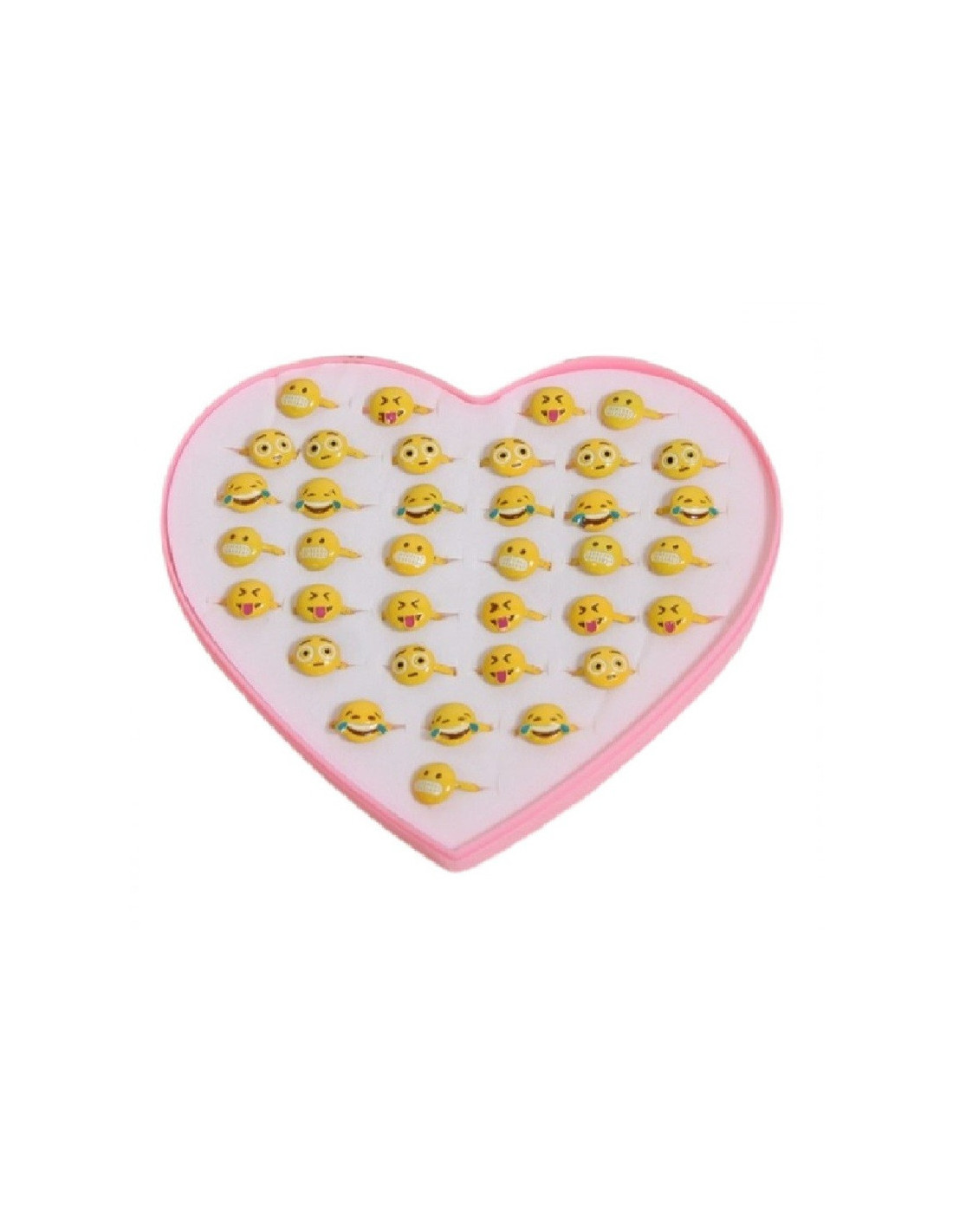 Zestaw pięknych pierścionków dziecięcych z regulacją w różowym pudełeczku w kształcie serca.