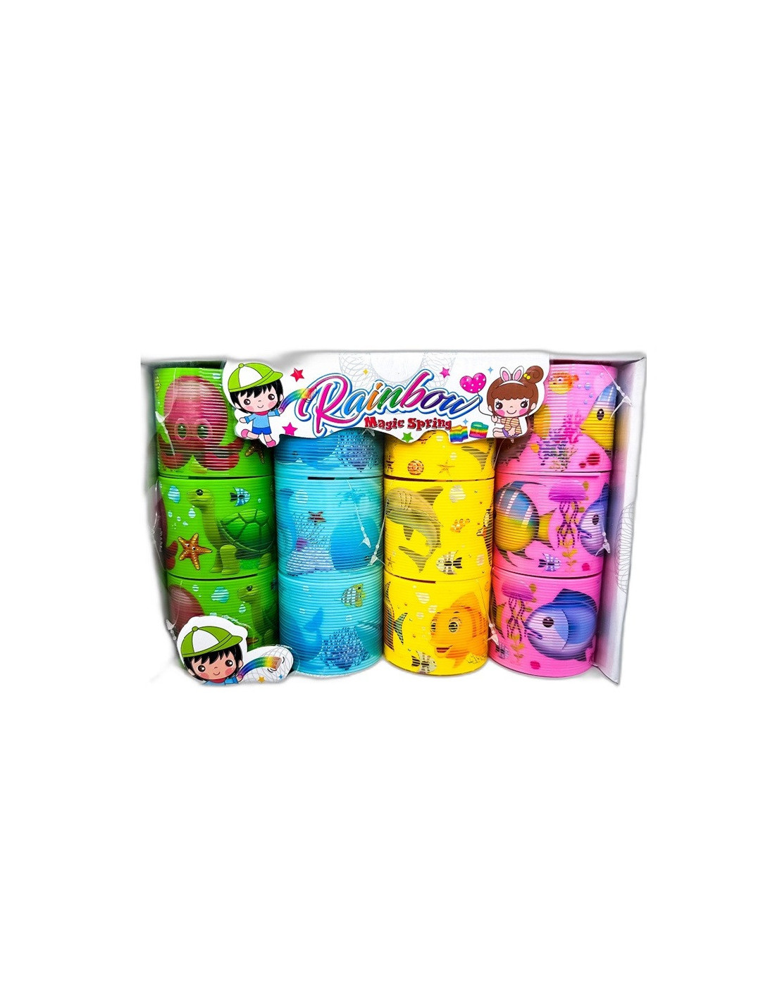 Zestaw kolorowych dużych plastikowych sprężynek z morskimi zwierzętami.