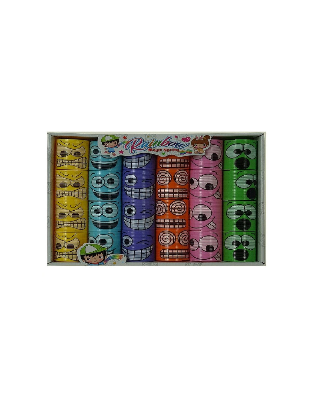 Zestaw kolorowych plastikowych sprężynek z buźkami.