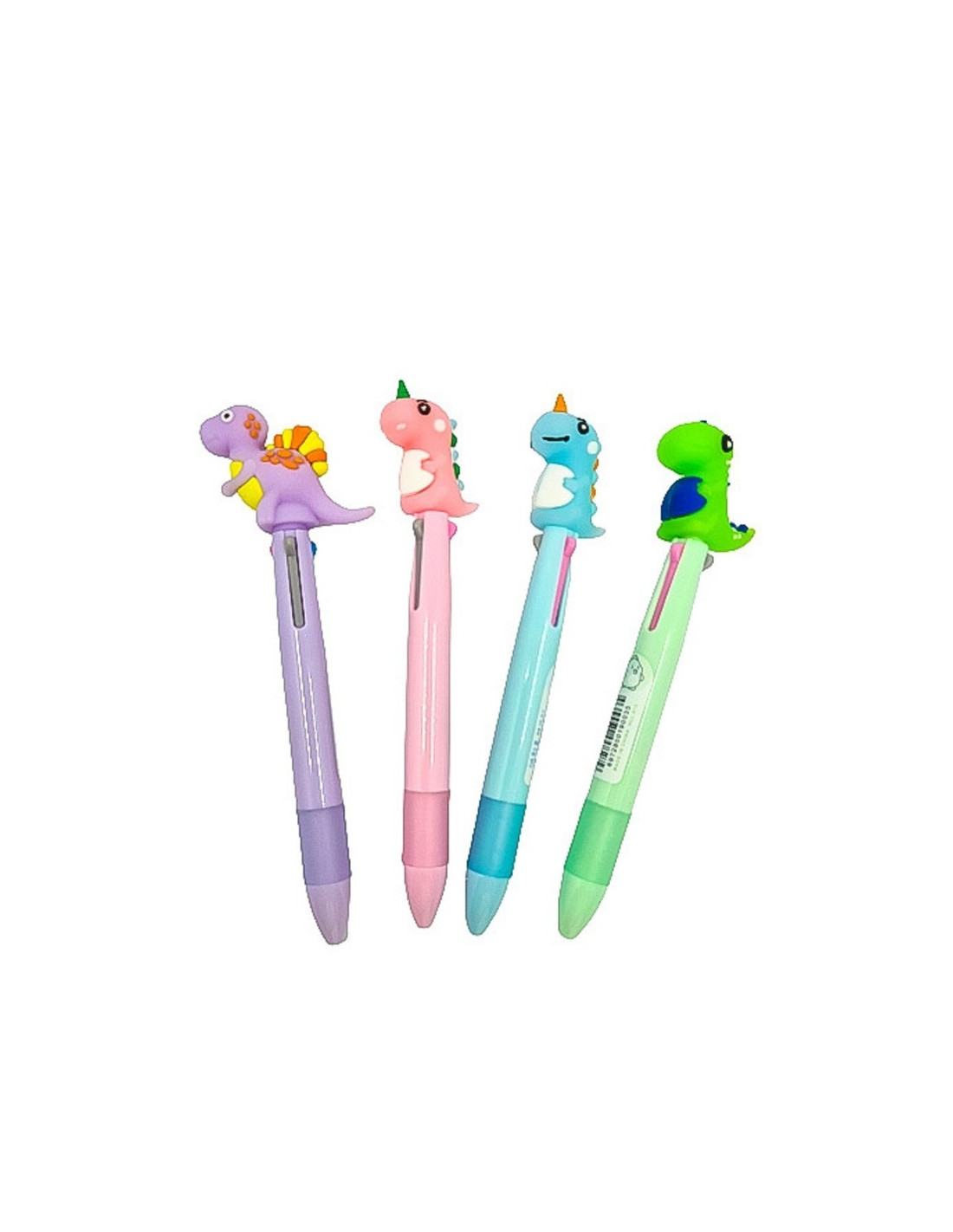 Kolorowy długopis wielokolorowy w kształcie dinozaura.