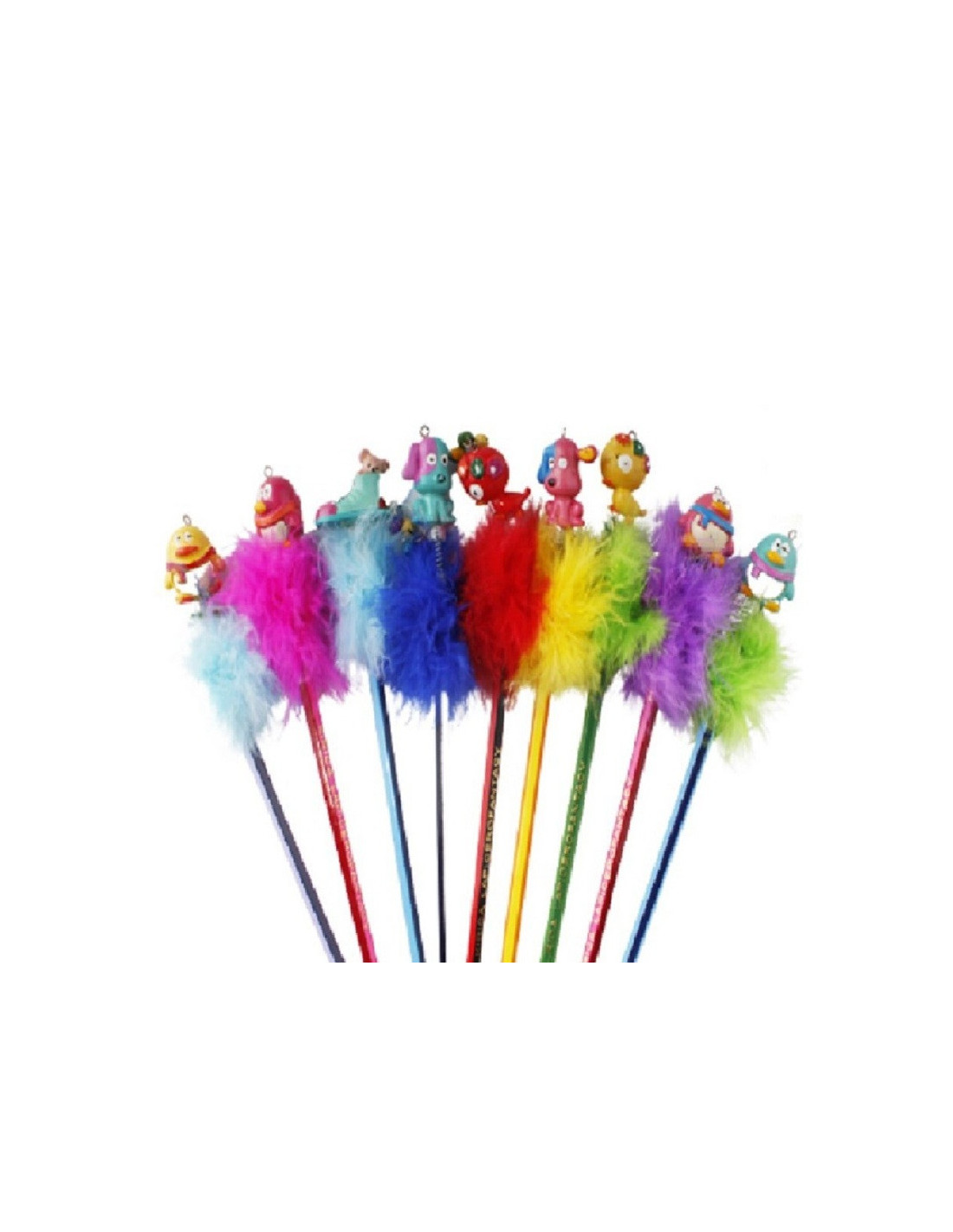 Kolorowe puszyste ołówki z figurką.