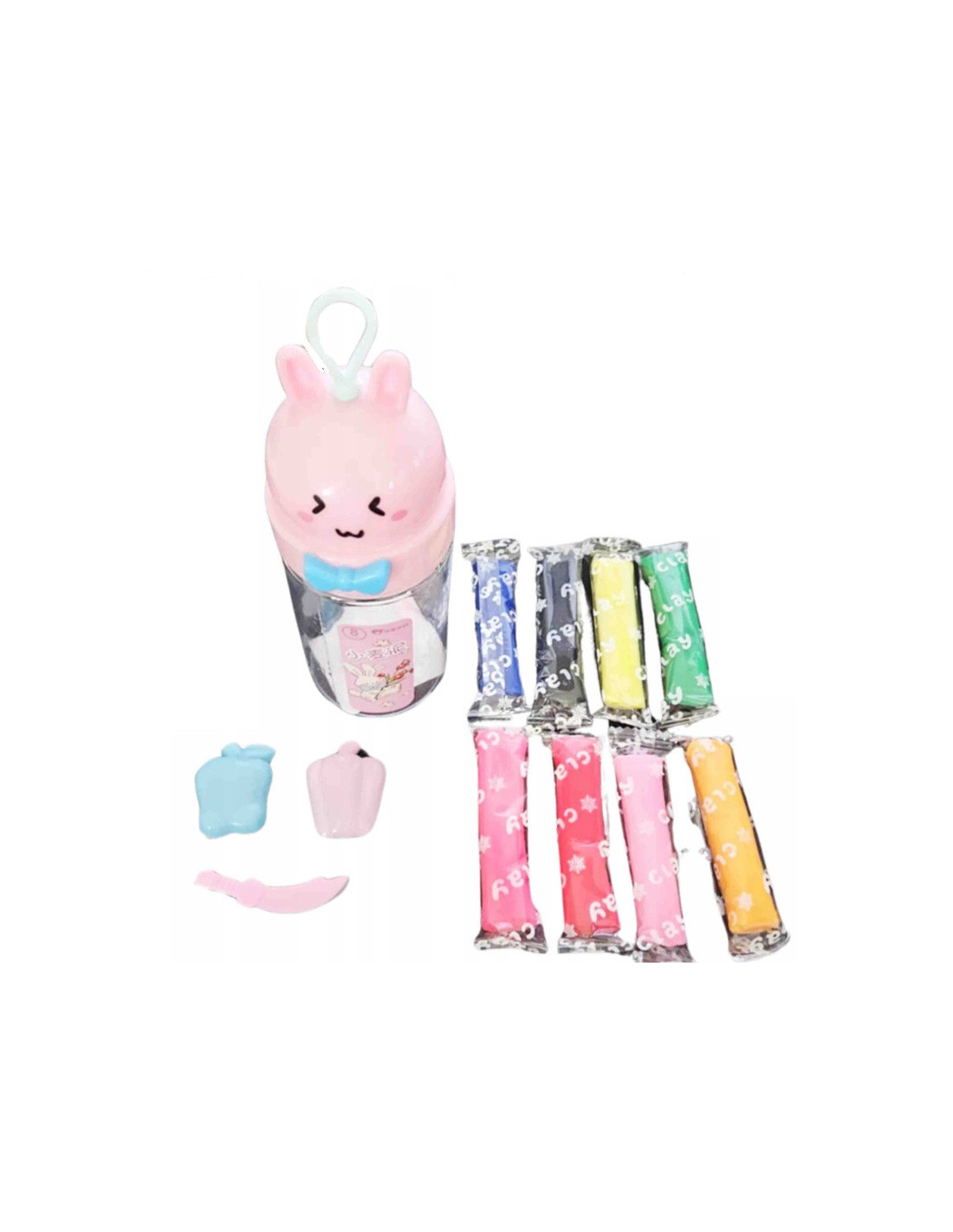 W skład zestawu wchodzi osiem kolorowych woreczków z plasteliną, co pozwala dzieciom tworzyć różnorodne figury i kształty, rozwijając przy tym wyobraźnię i zdolności manualne.
