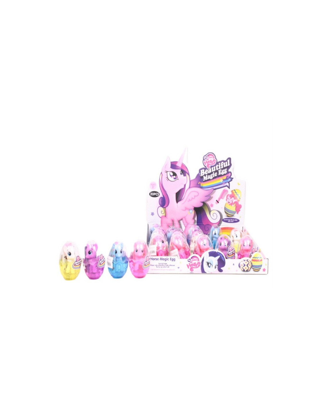 Kolorowy jednorożec z akcesoriami w jajku.