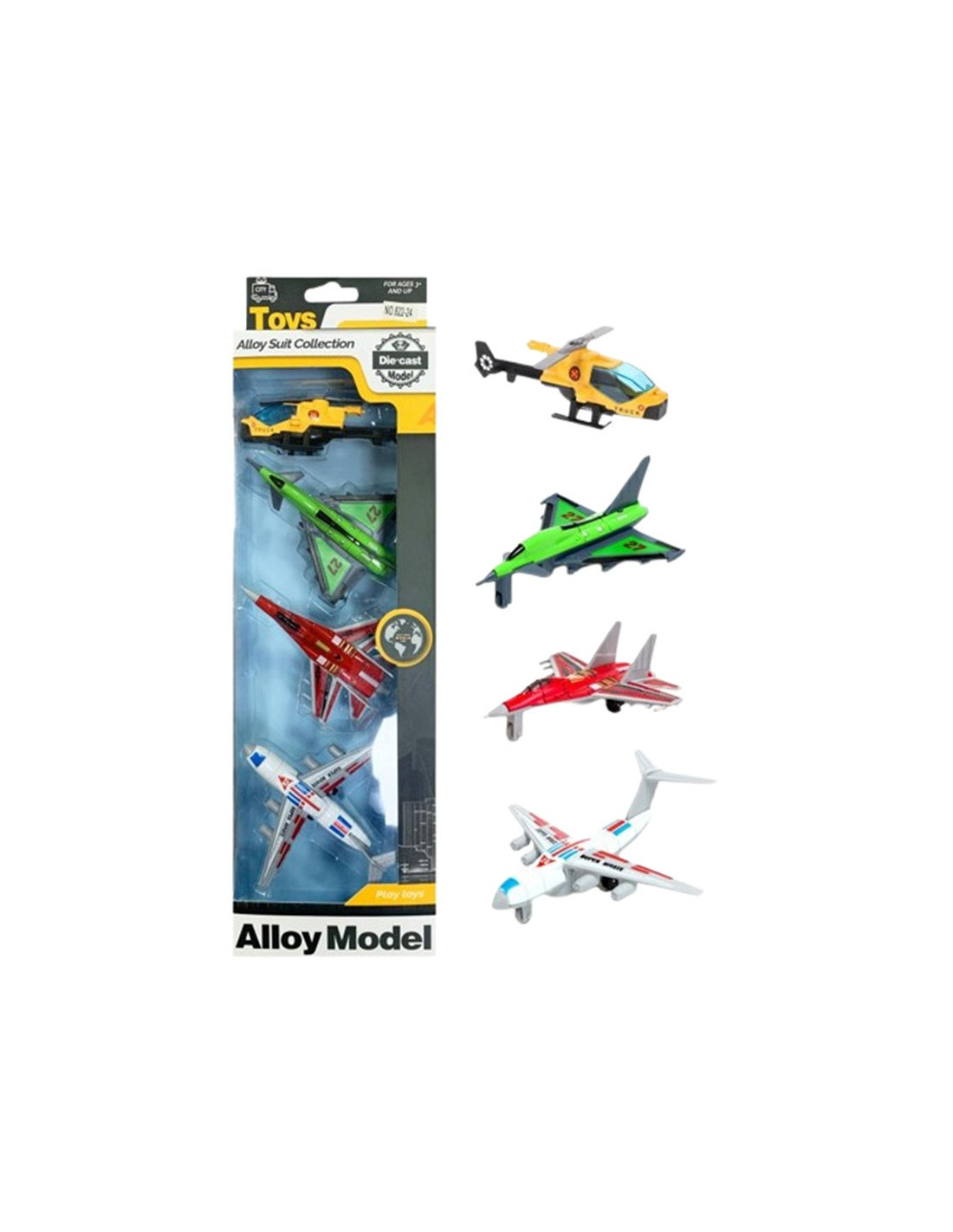 W zestawie 4 metalowe samoloty z plastikowymi elementami.