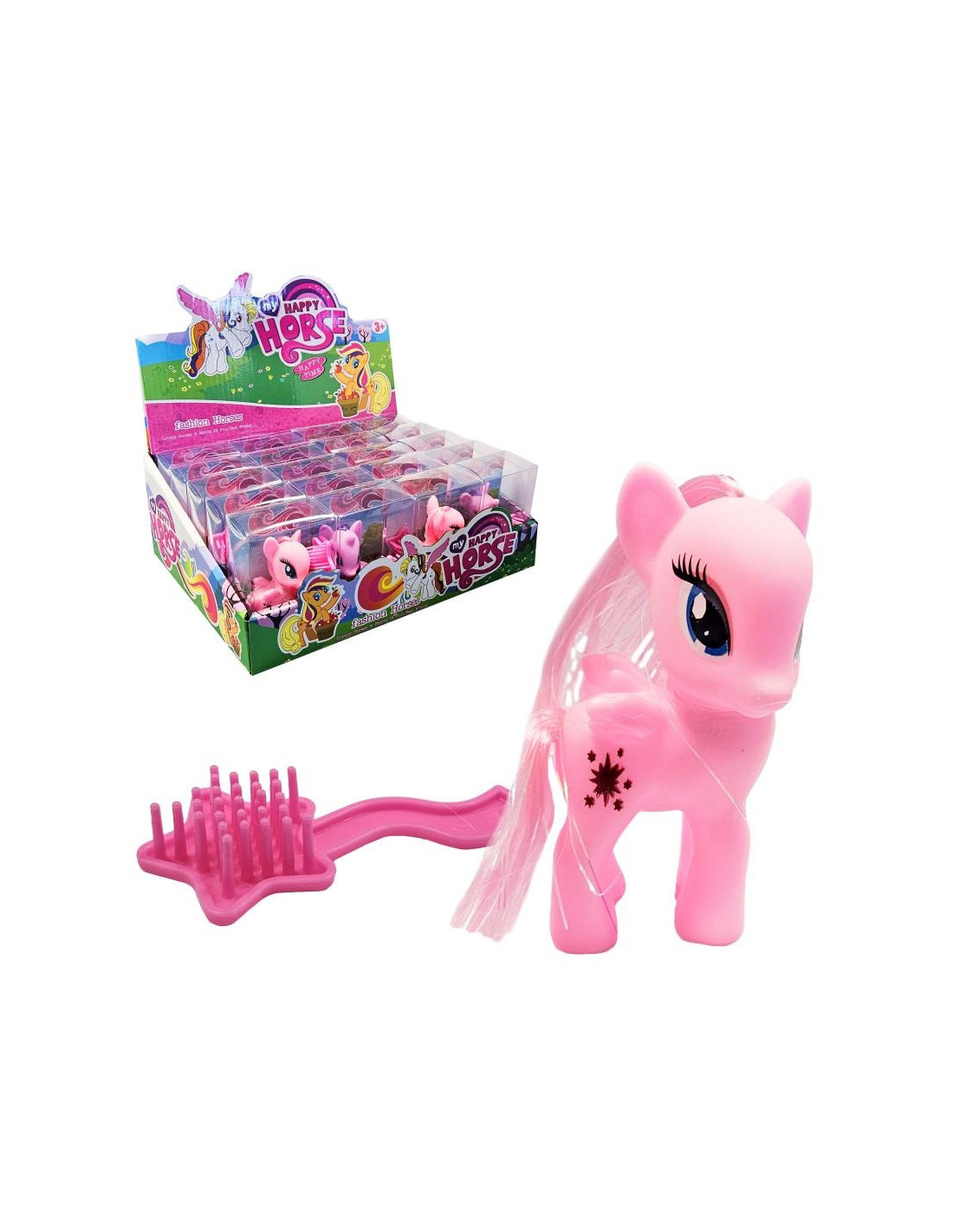 Kolorowy jednorożec z akcesoriami w pudełku.