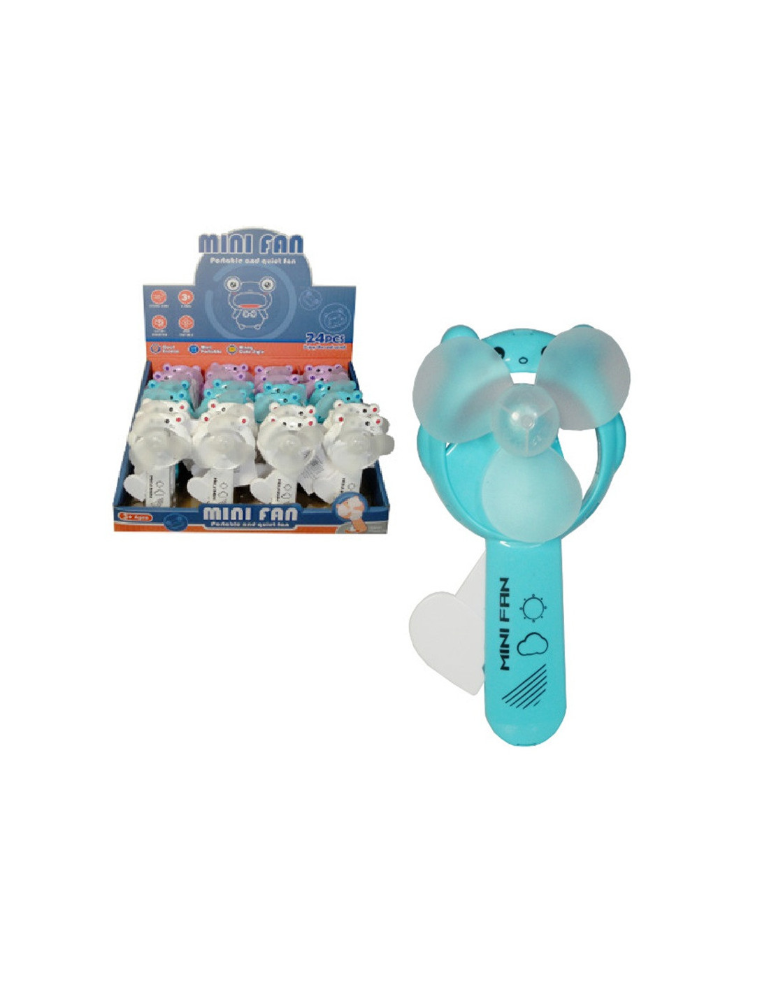 Wiatraczek posiada ręczny mechanizm- po naciśnięciu na przycisk śmigło zostaje wprowadzone w ruch obrotowy, wytwarzając wiaterek.