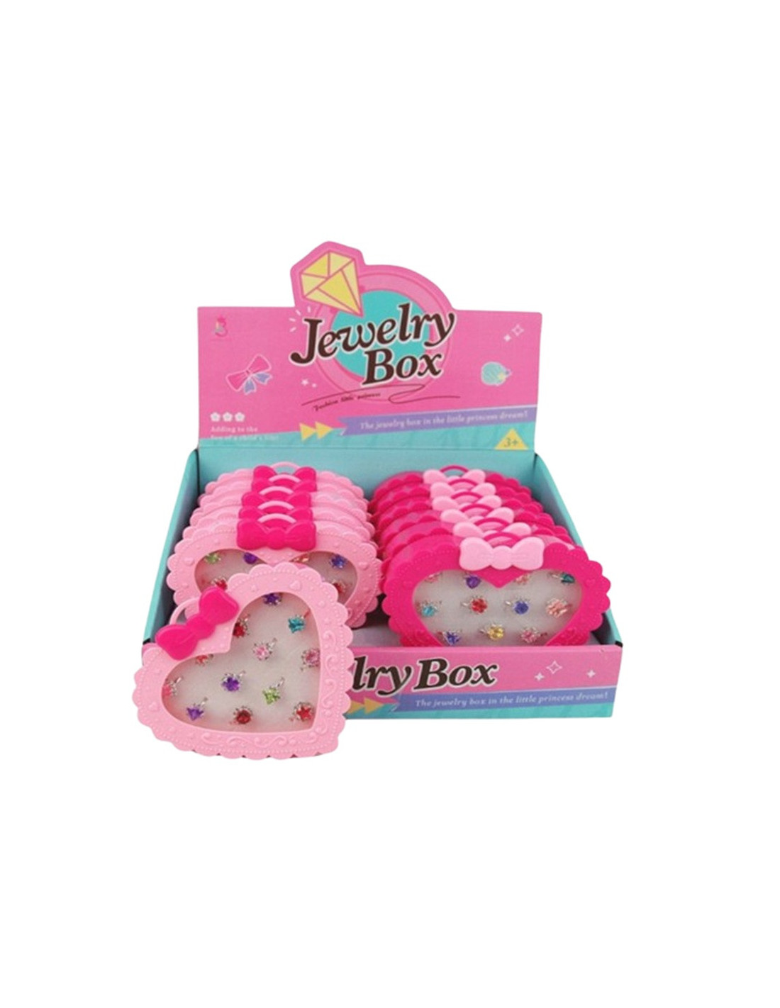Zestaw pięknych pierścionków dziecięcych z regulacją w różowym pudełeczku.