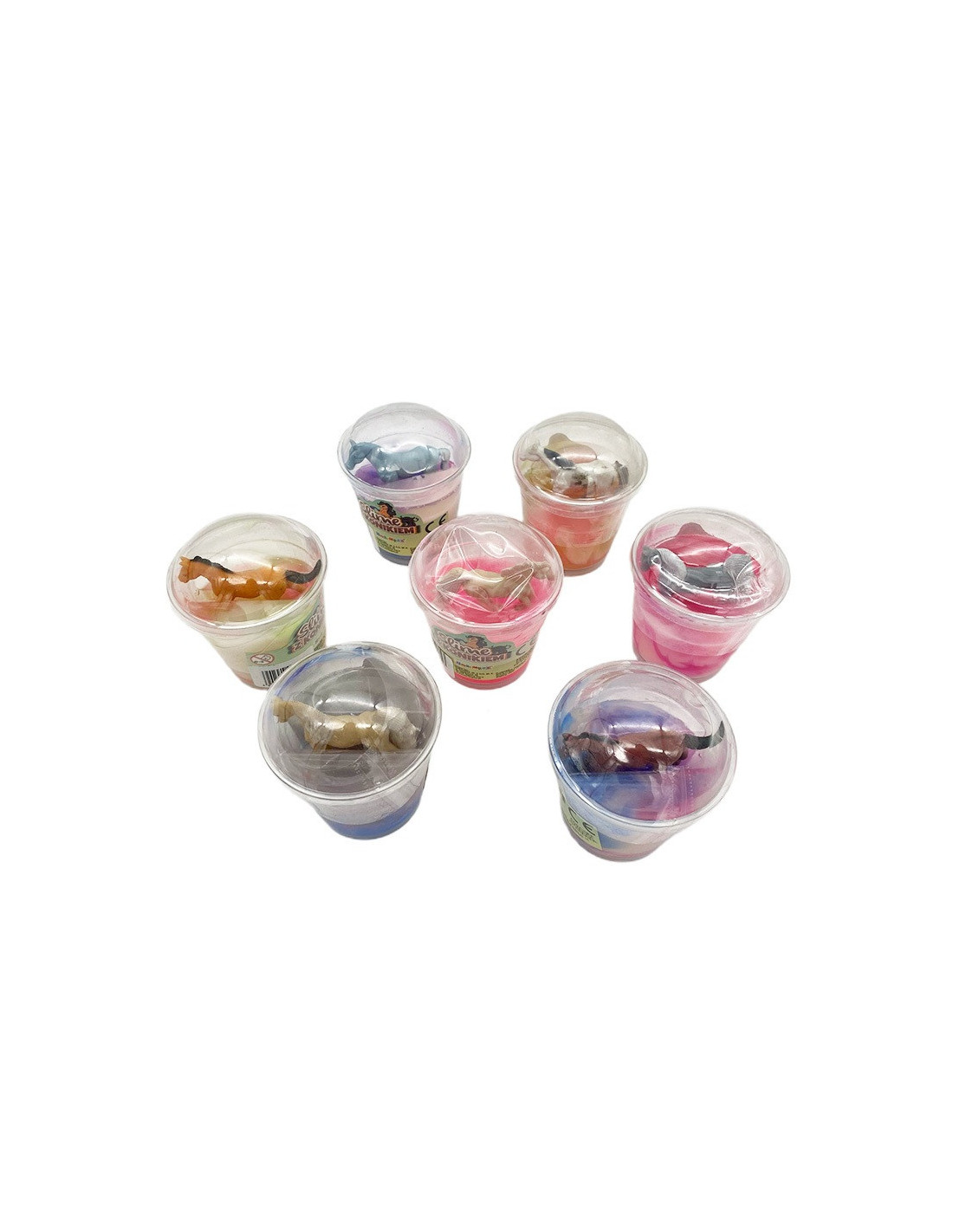 W każdym pojemniku znajdziesz elastyczną, przelewającą się masę oraz uroczego konika – każdy zestaw jest wyjątkowy, ponieważ różni się kolorem zarówno slime, jak i figurki.