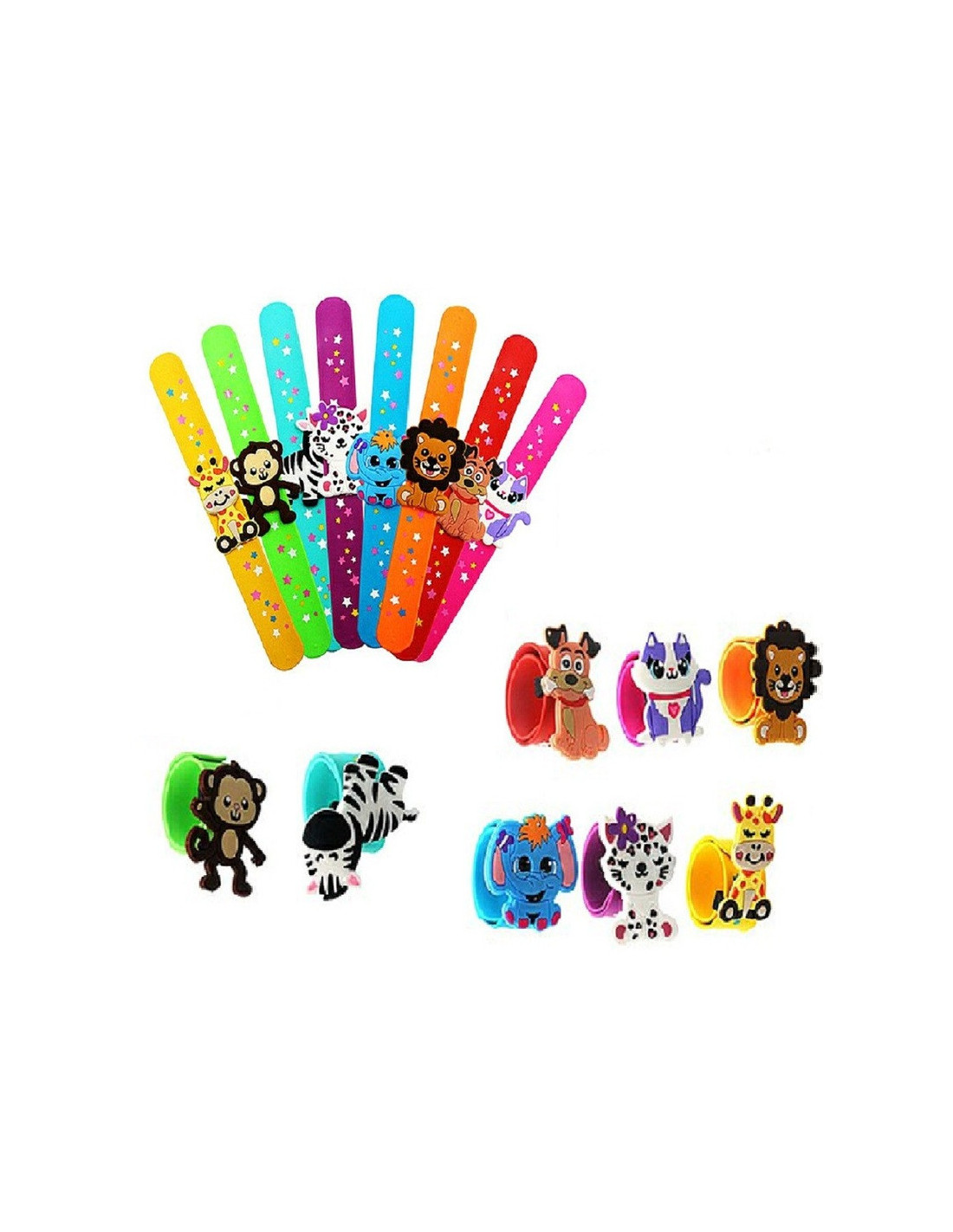 Kolorowa bransoletka samozaciskowa ze zwierzątkami.