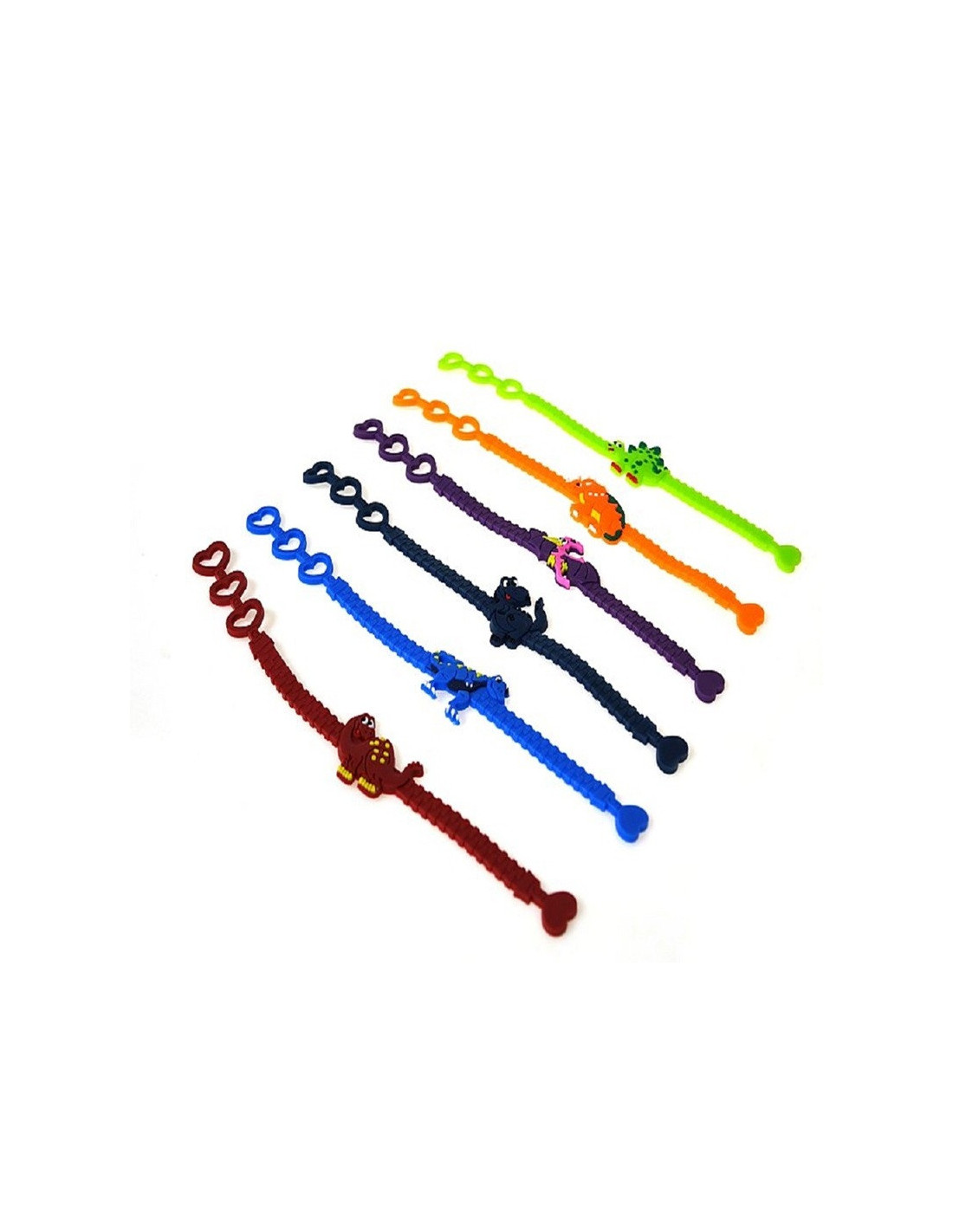 Kolorowa bransoletka gumowa z dinozaurem.