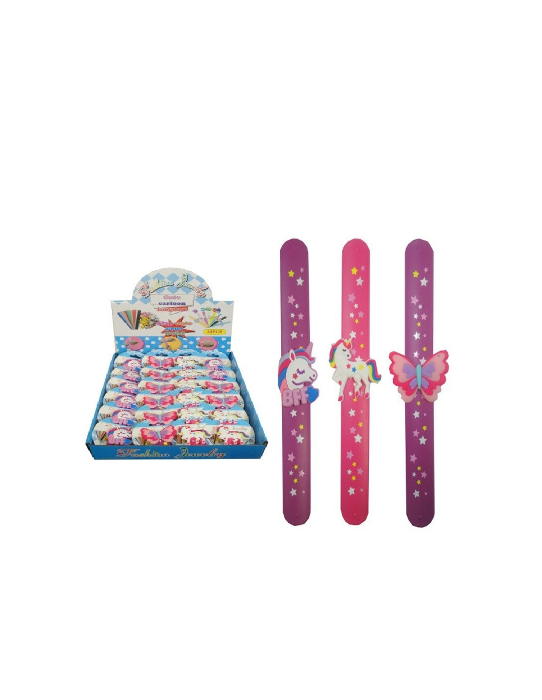 Kolorowa bransoletka samozaciskowa z jednorożcem lub motylem.