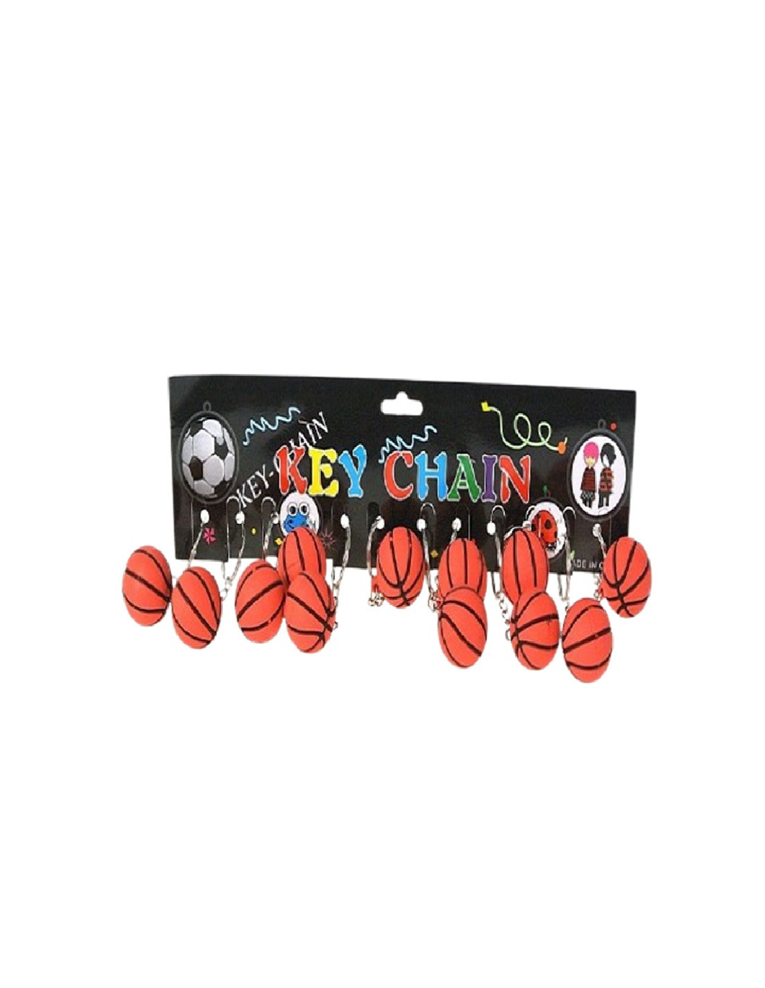 Kolorowy brelok w kształcie piłki do kosza.