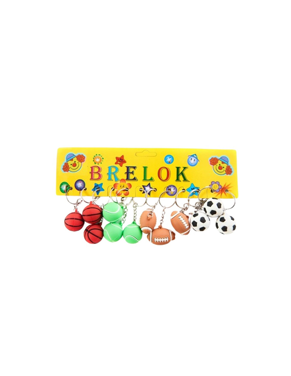 Kolorowy brelok w kształcie piłek do różnych sportów.