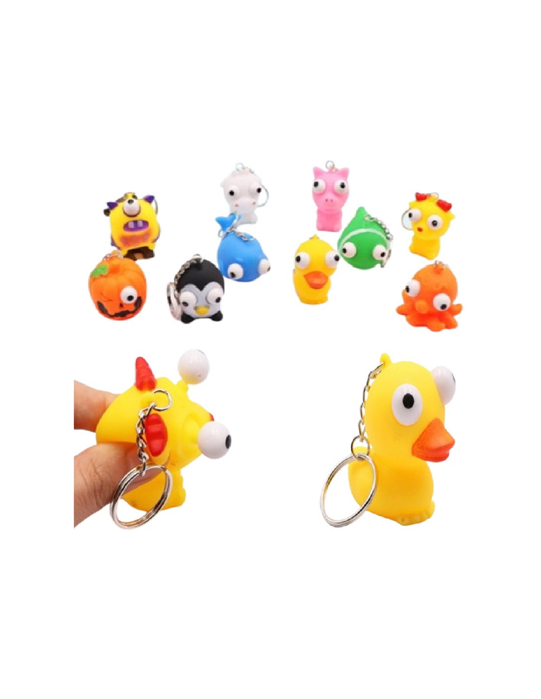 Kolorowe breloki z wyłupiastymi oczami.