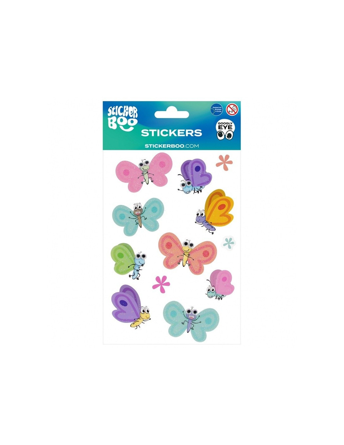 Naklejki STICKER BOO z grafiką w Motyle z żelowymi oczami z pewnością przypadną do gustu dzieciakom, idealne do zdobienia rysunków, wszelkiego rodzaju prac plastycznych oraz kolekcjonowania.