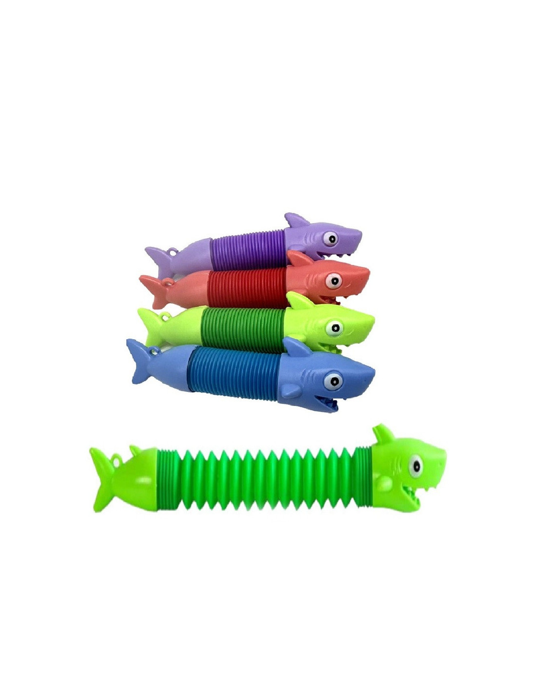Kolorowe figurka rekina, które można rozciągać i wyginać.