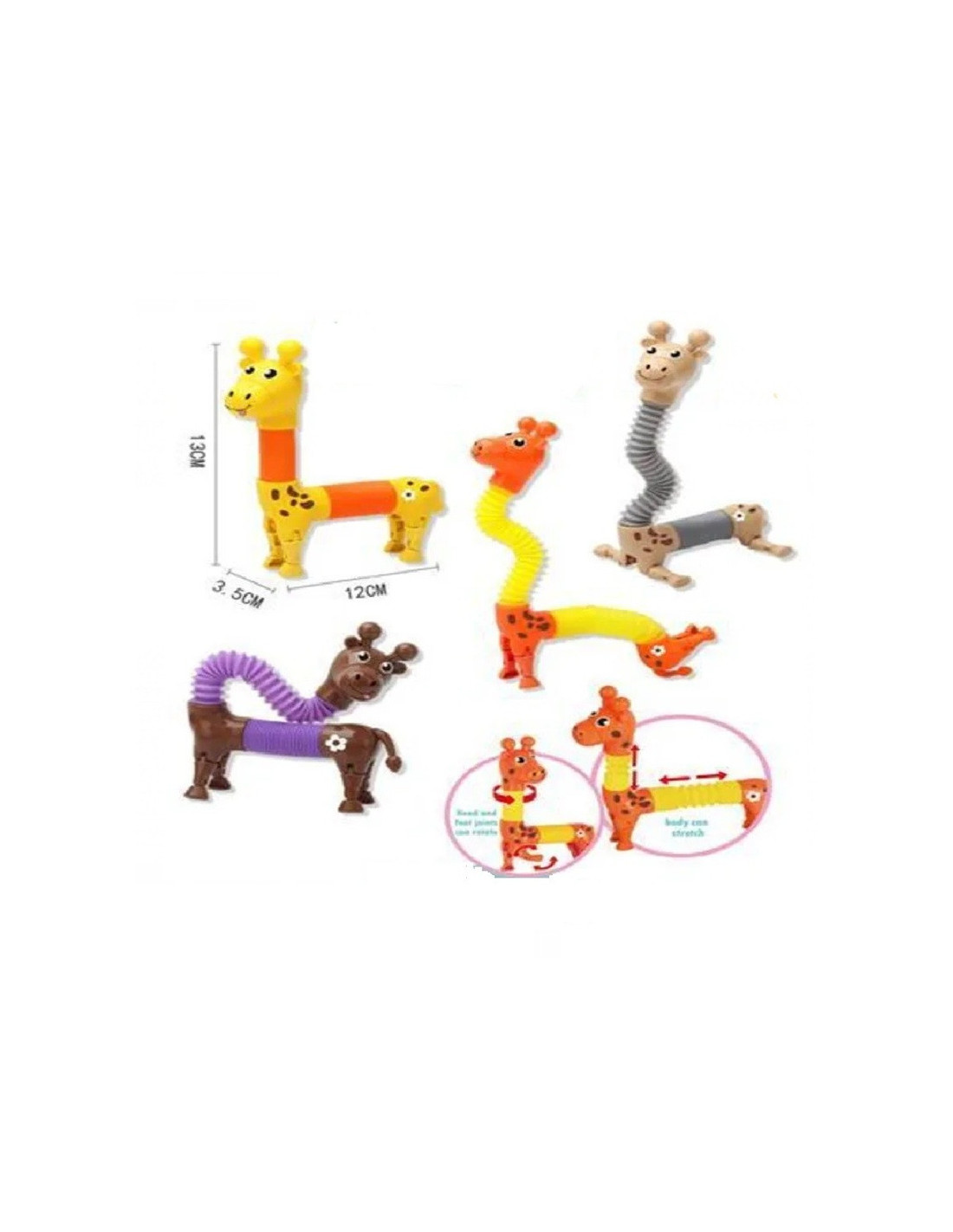 Kolorowe figurki żyrafy, które można rozciągać i wyginać.