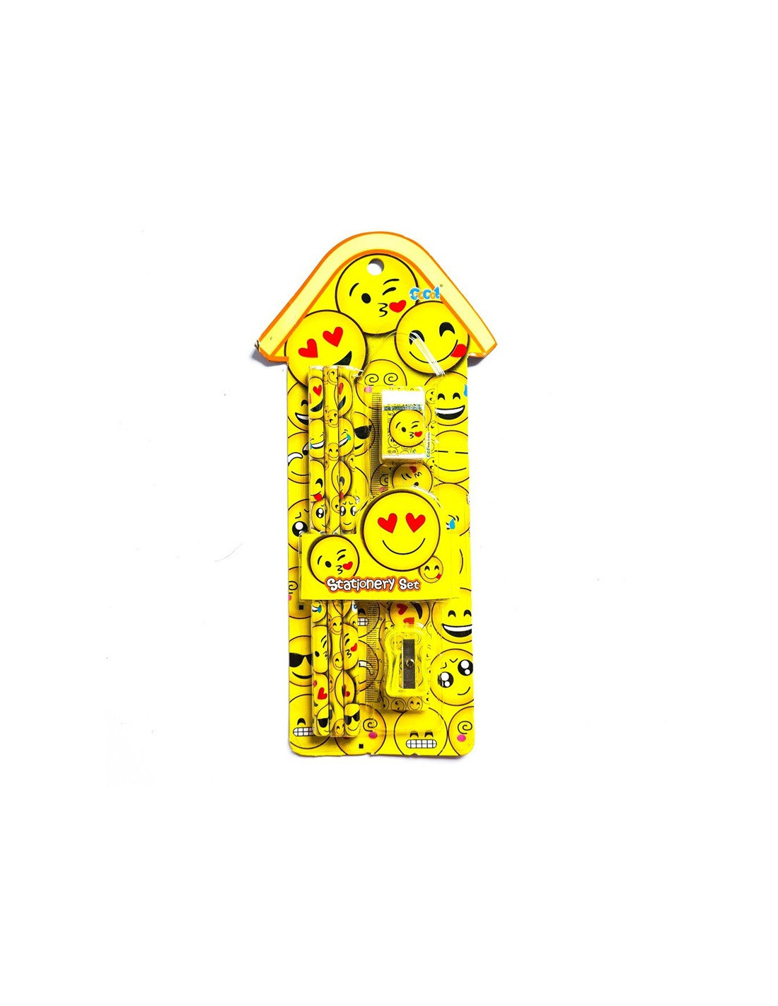 Zestaw do szkoły dla dzieci z motywem emotikonów w skład którego wchodzą: