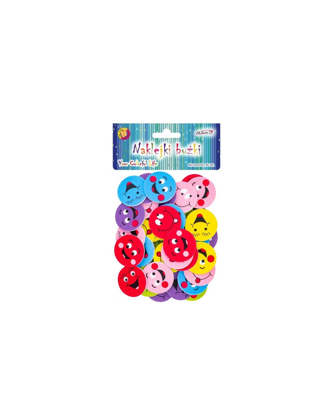 Kolorowe naklejki piankowe w kształcie buziek.