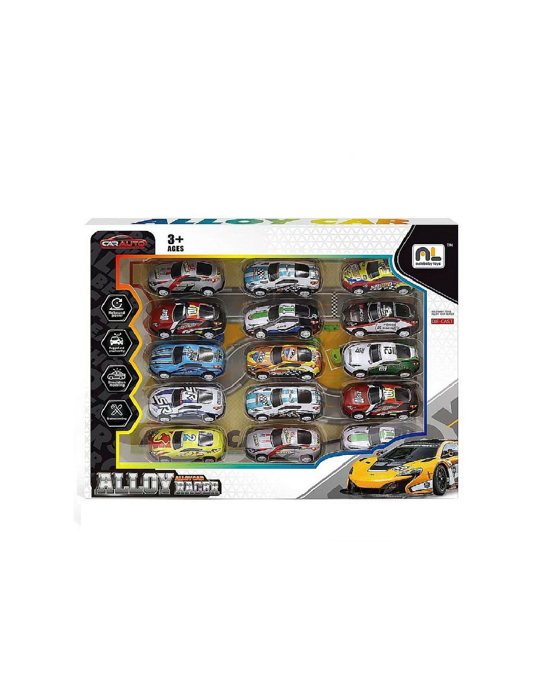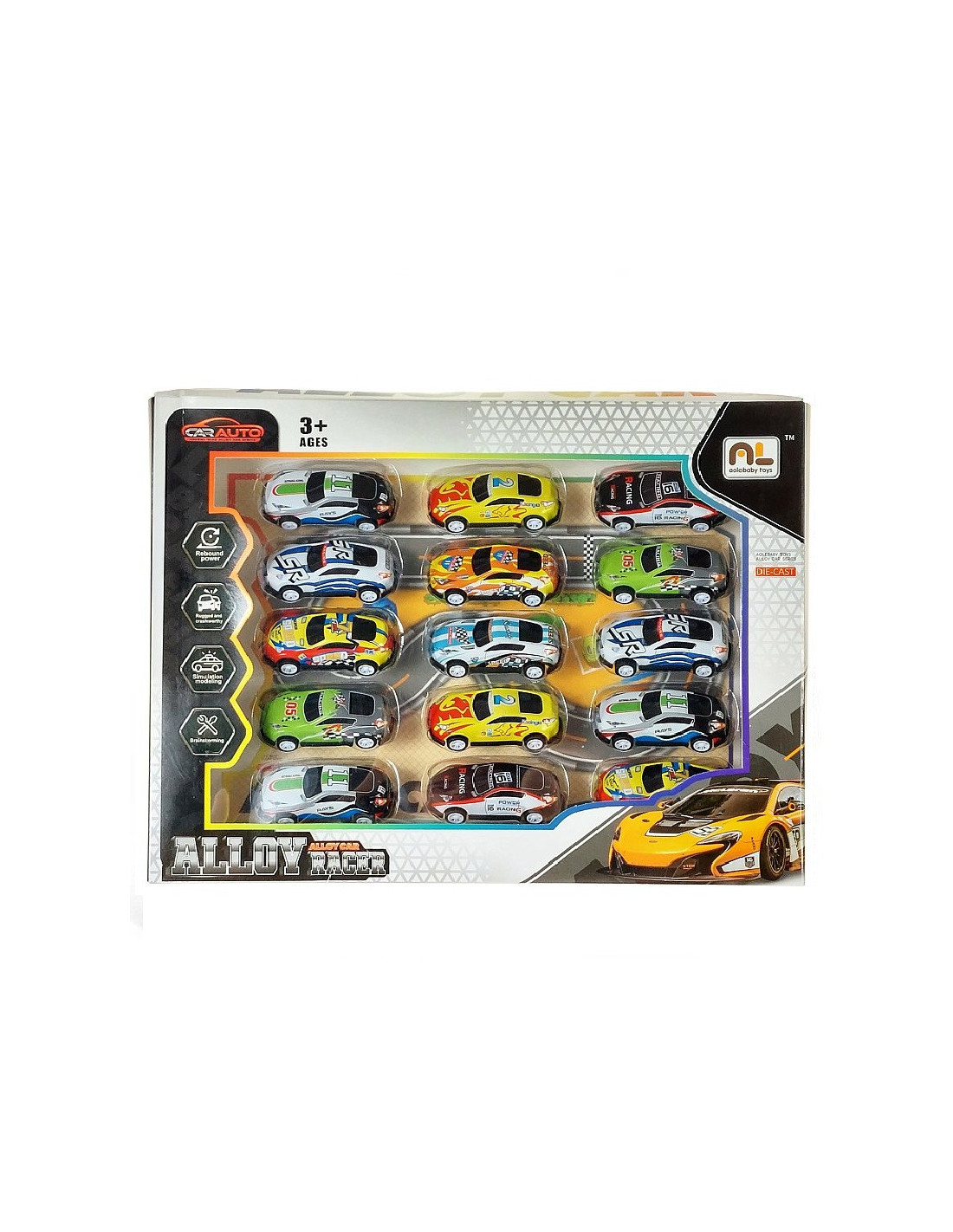 Zestaw kolorowych metalowych pojazdów sportowych.