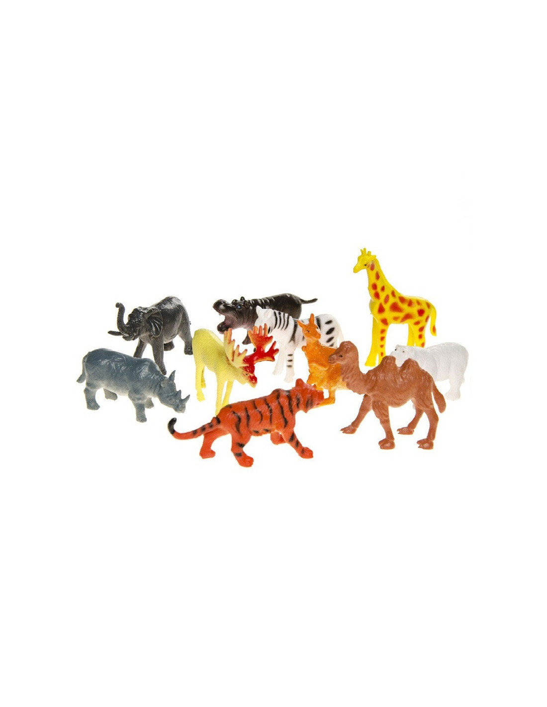 Zestaw zawiera 12 figurek dzikich zwierzątek.