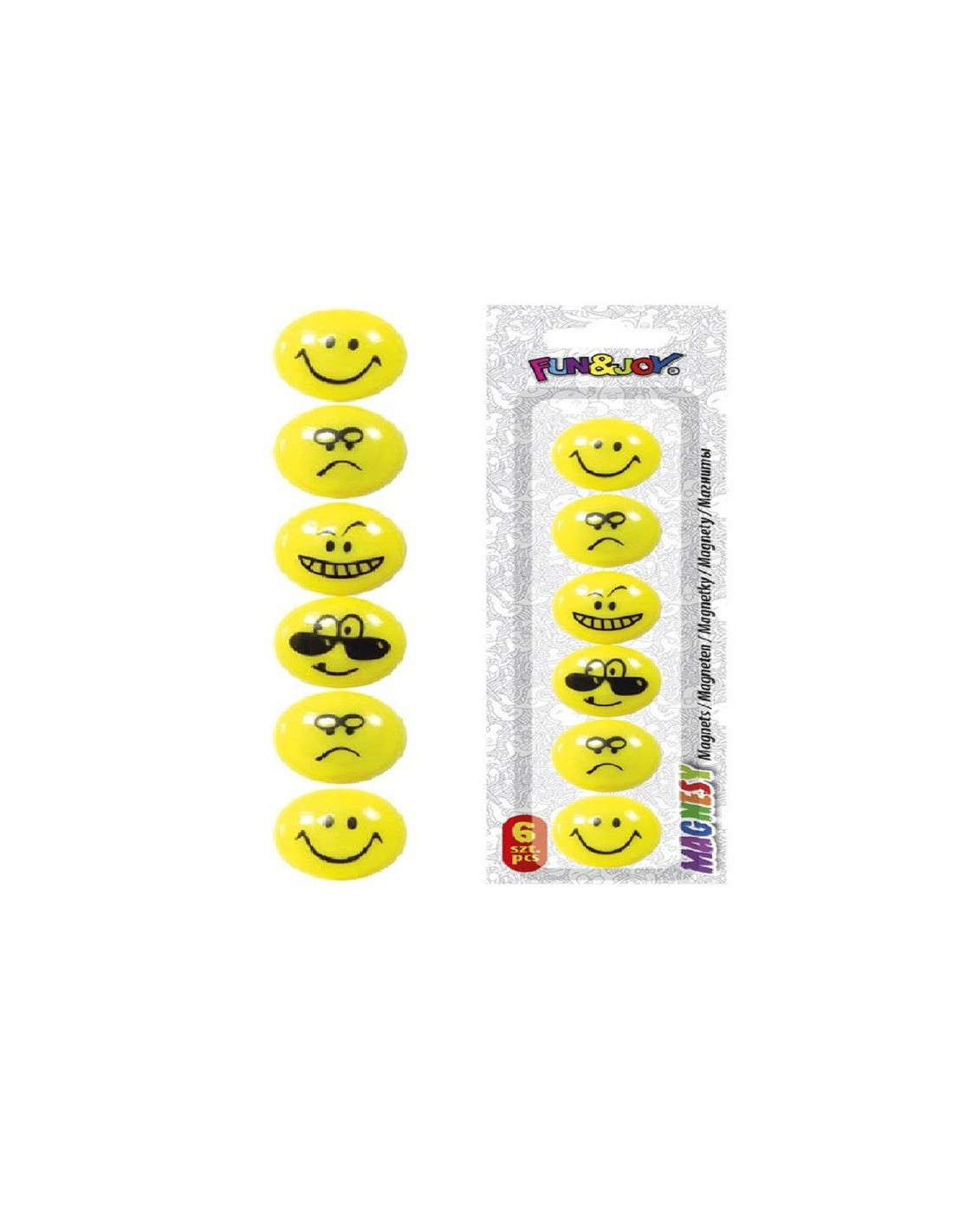 Zestaw mocnych magnesów w plastikowej obudowie w kształcie uśmiechniętych emotek.