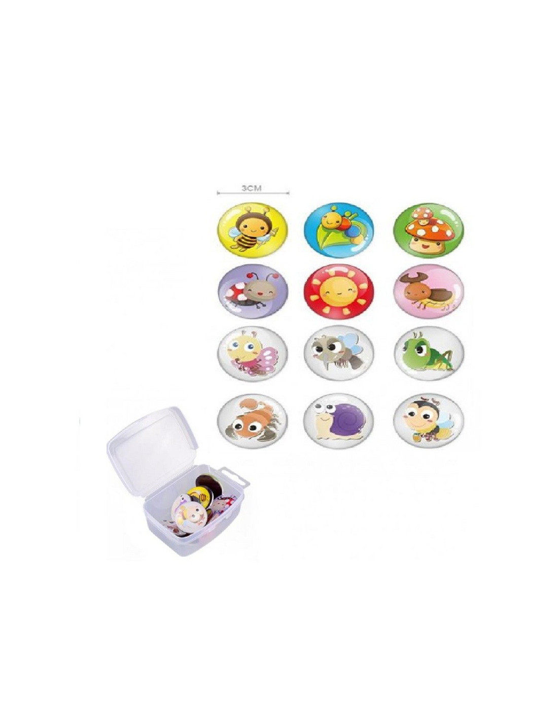 Zestaw mocnych magnesów w szklanej obudowie w z motywem owadów.
