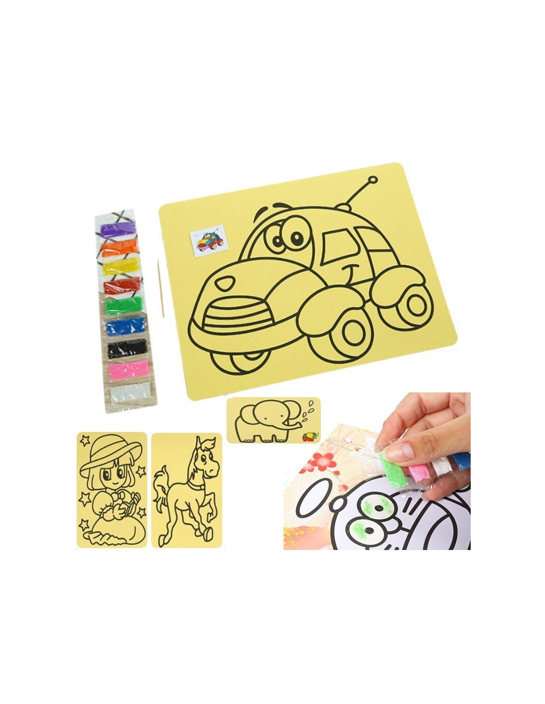 Uwielbiana przez dzieci, artystyczna zabawa malowania piaskiem, polegająca na odsłanianiu kolejno poszczególnych, naciętych elementów obrazka, tak by odkryć klejącą powierzchnię.