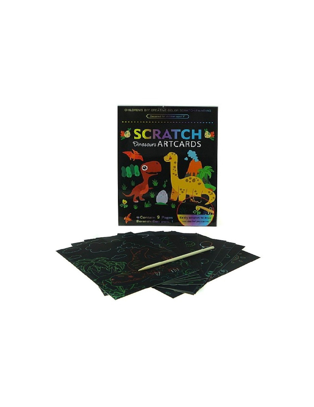 Wydrapywanka to zestaw, aż 9 dwustronnych arkuszy z różnymi ilustracjami przedstawiającymi dinozaury.