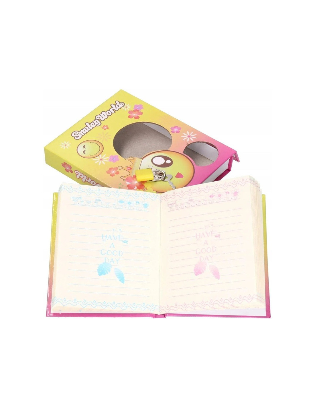 Kolorowy pamiętnik w twardej oprawie z motywem wesołych emotikonków i kłódką do zapisywania wszystkich swoich najskrytszych sekretów.