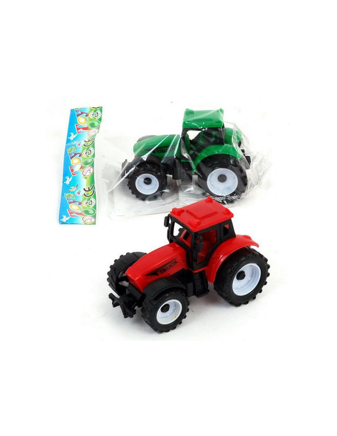 Kolorowy traktor z napędem (pull-back) do zabawy dla dzieci.