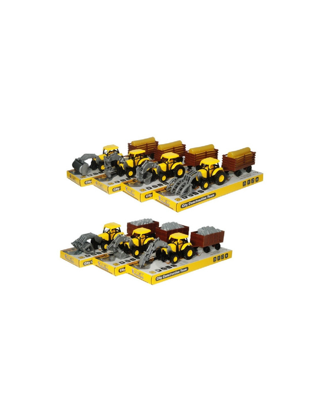 Plastikowy traktor z przyczepą.