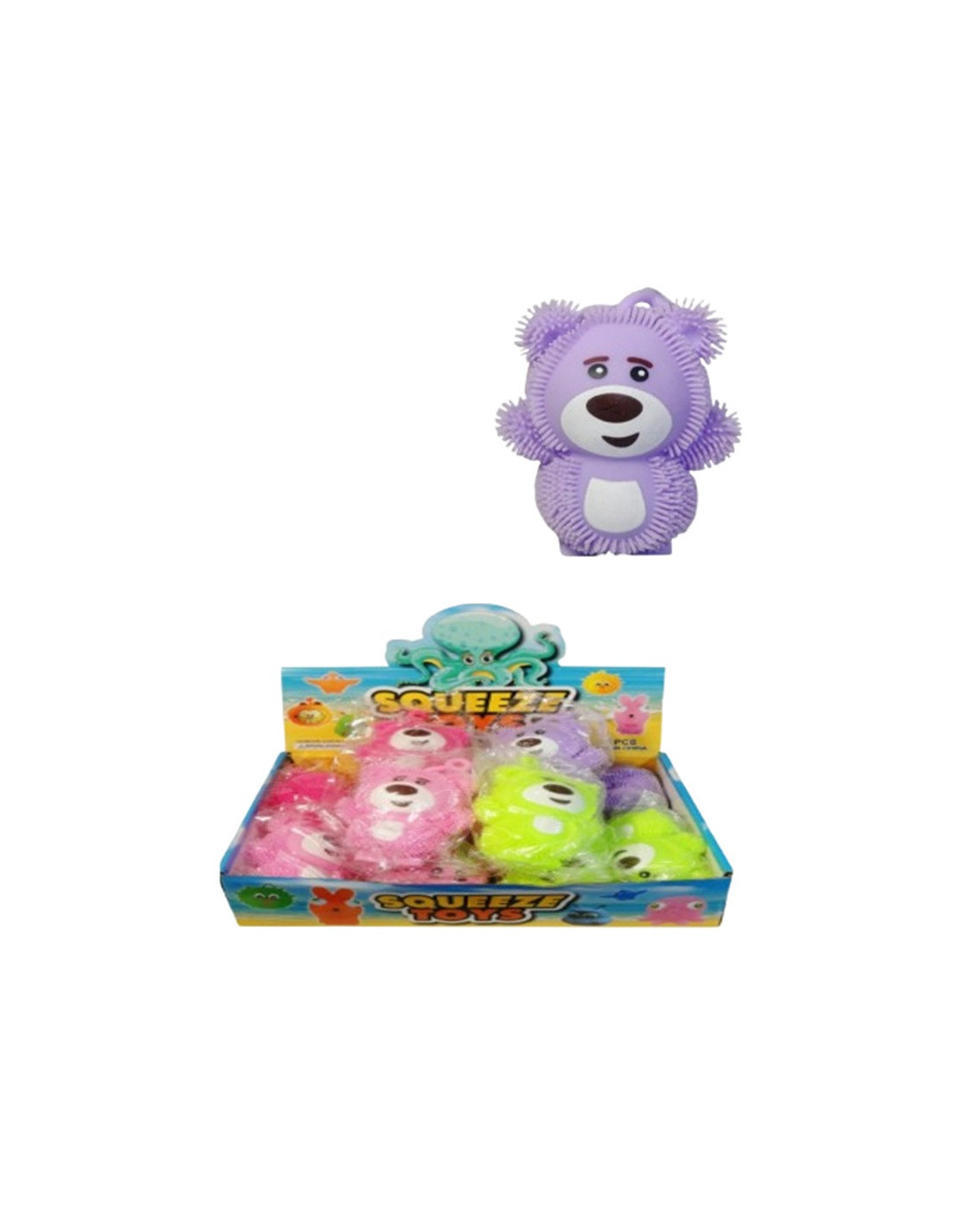Duży kolorowy gumowy gniotek w kształcie misia.