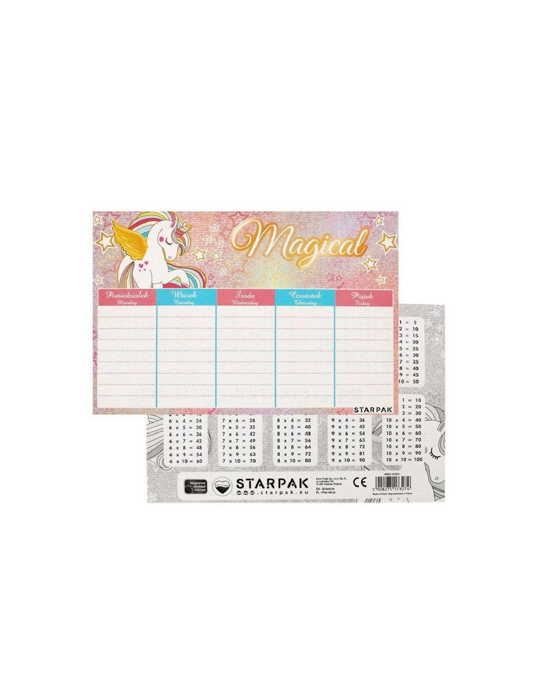 Plan Lekcji z Tabliczką Mnożenia A5 Jednorożcami.