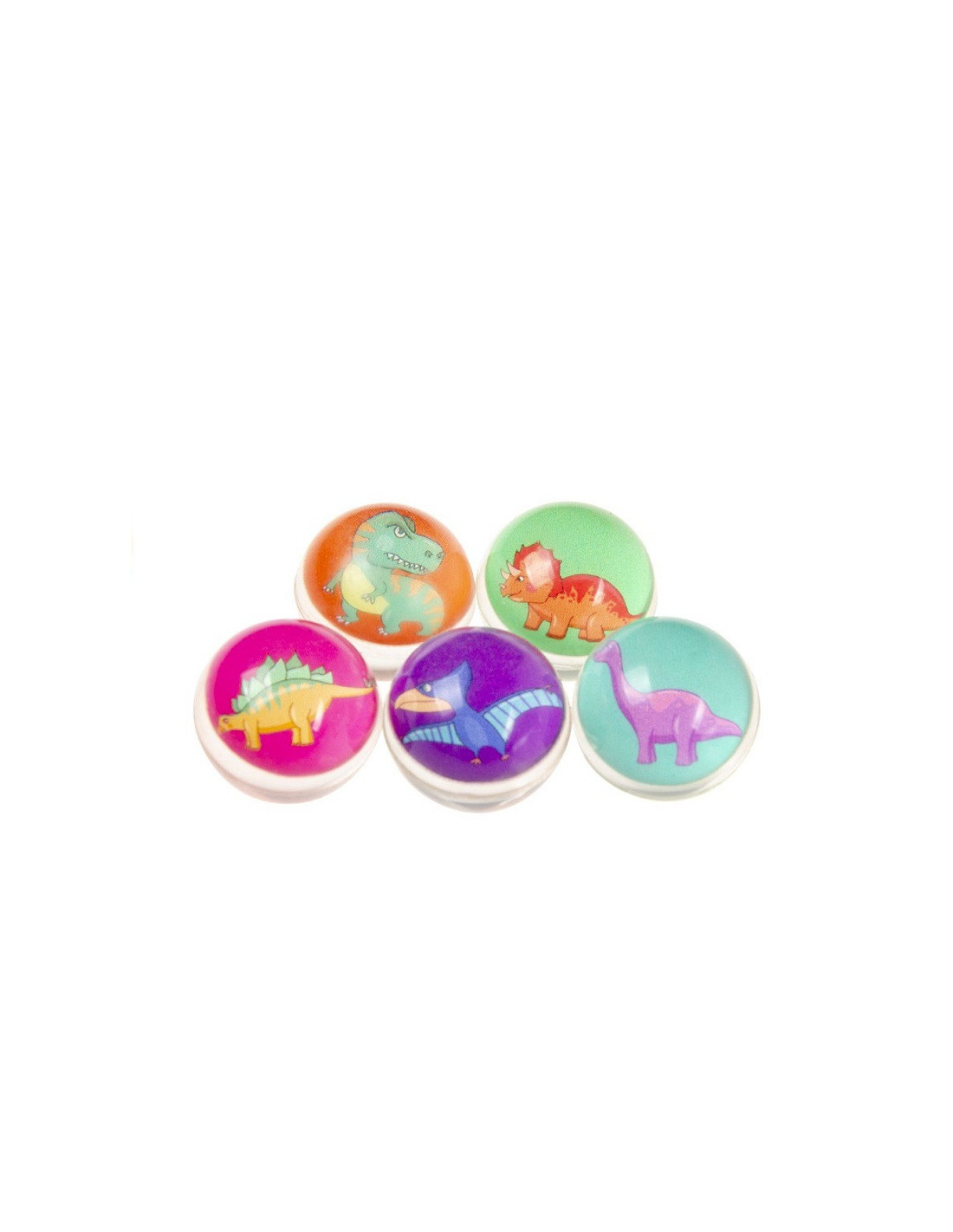 Zestaw kolorowych piłeczek kauczukowych z zabawnymi dinozaurami (3 cm).