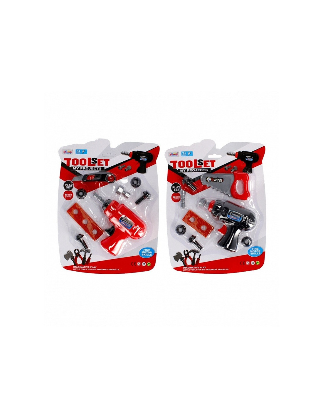 Nauka używania narzędzi warsztatowych, rozwijanie zdolności manualnych, ruchome wiertło które kręci się w dwie strony, wiertarka posiada efekt kręcącego się wiertła uruchamiany ręcznie za pomocą przyciskania włącznika.