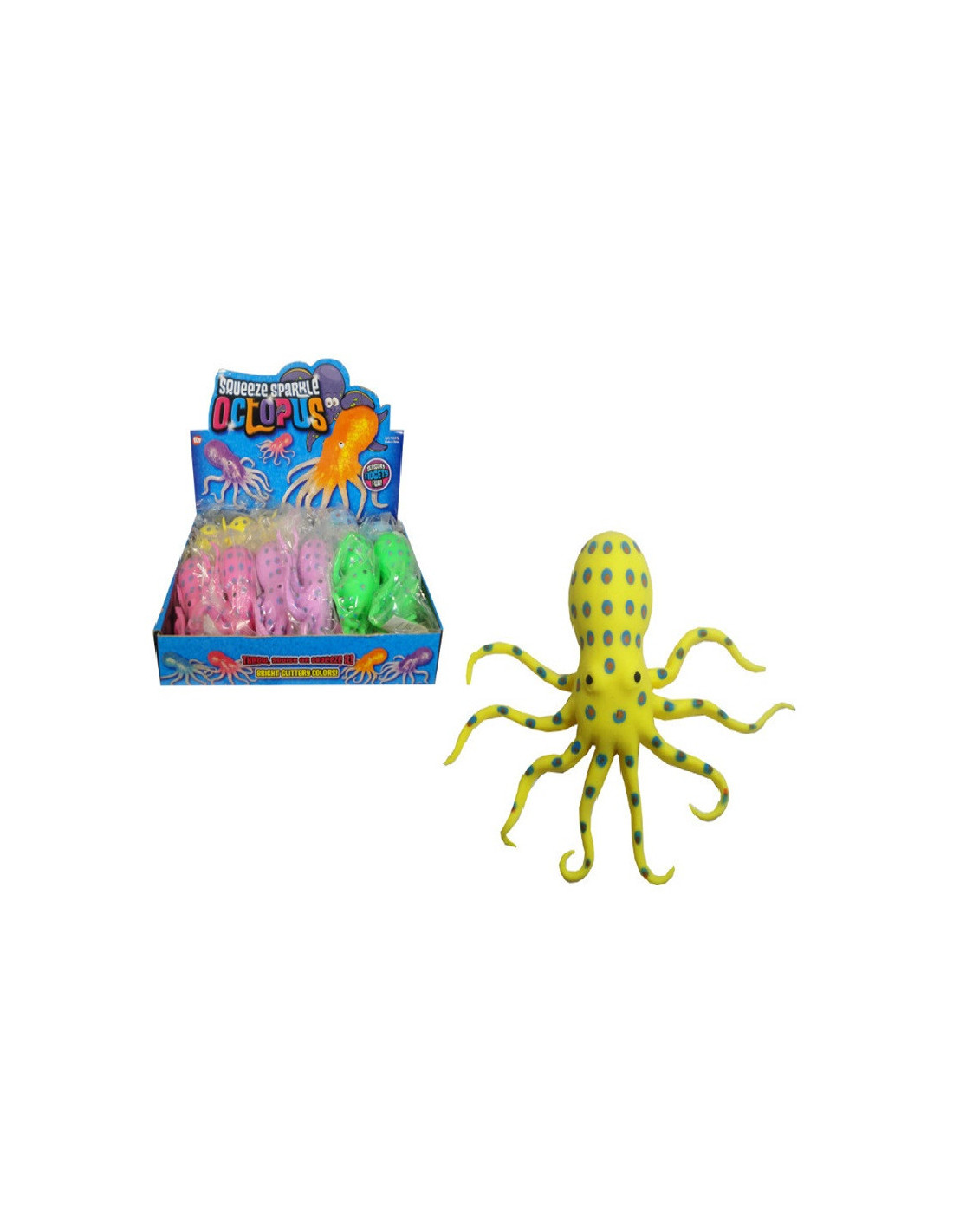 Duży kolorowy gniotek w kształcie ośmiornicy.