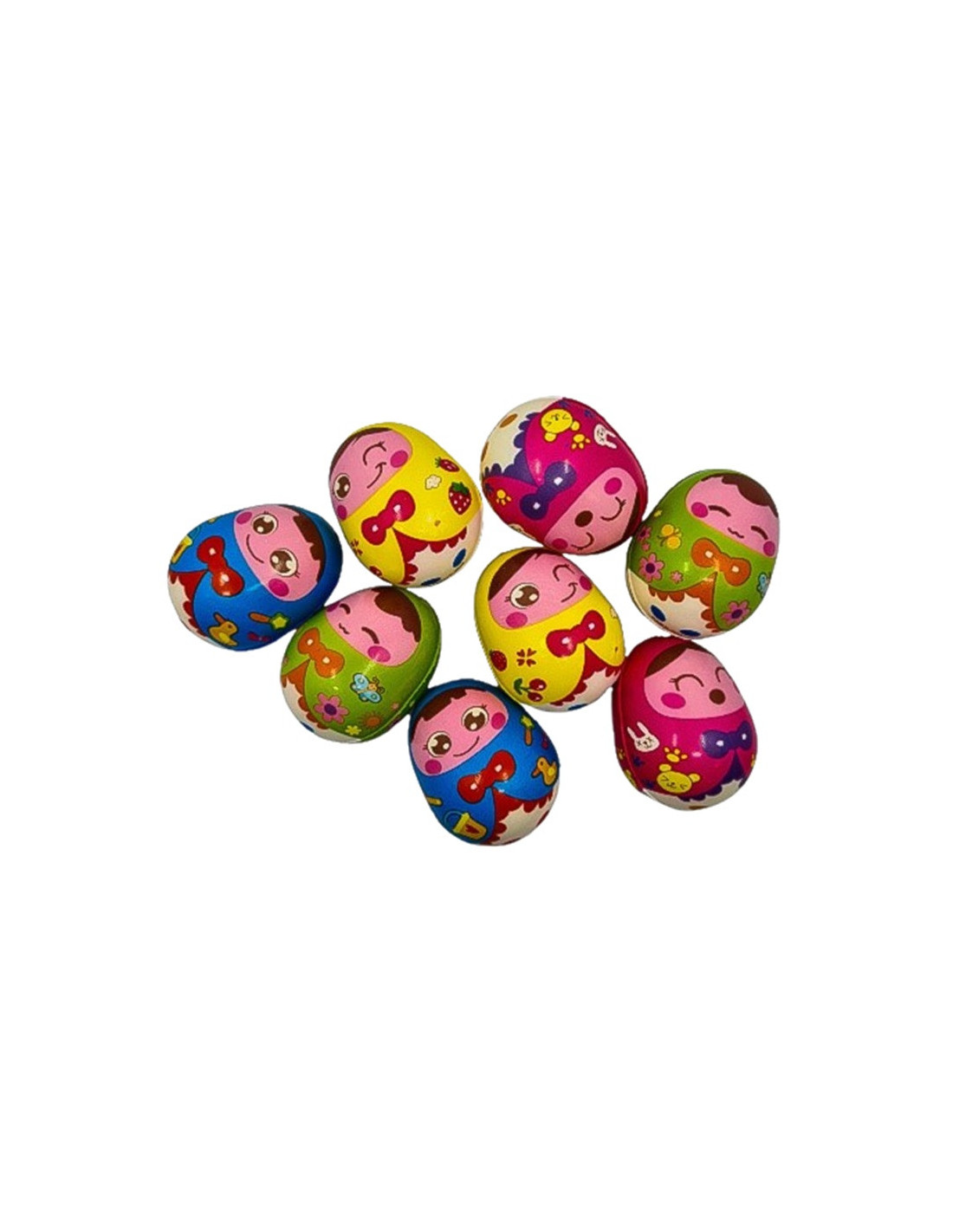 Kolorowe piłki piankowe w kształcie jajka (wzór: matrioszka).