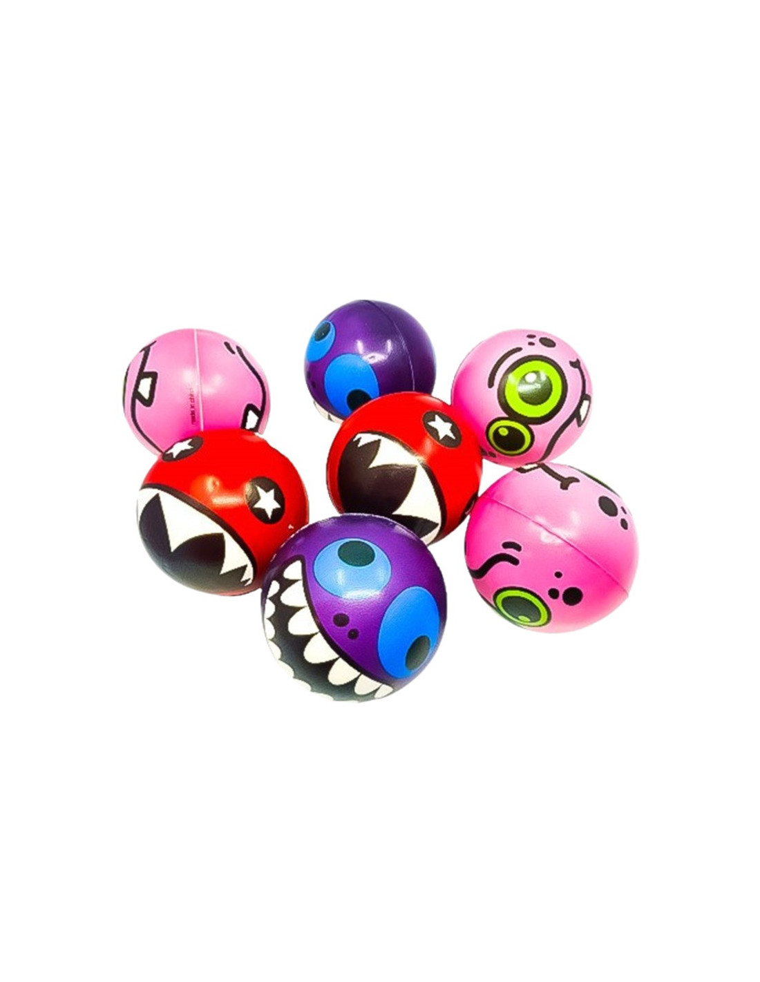 Kolorowe piłki piankowe ze śmiesznymi stworkami ( średnica piłki 6 cm).
