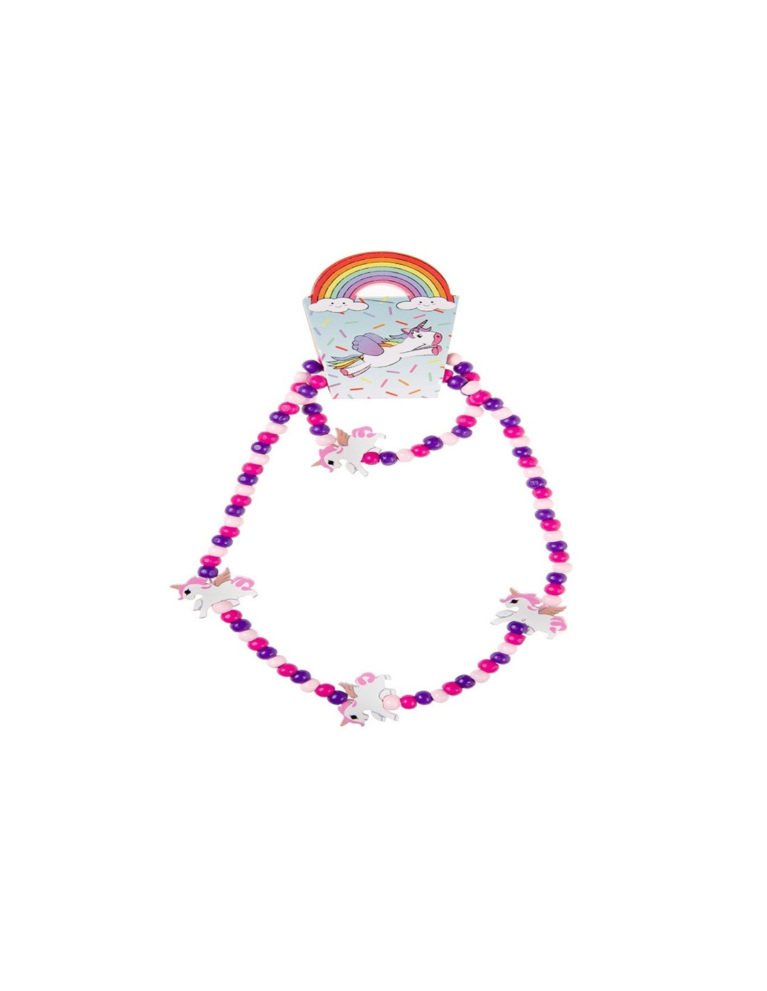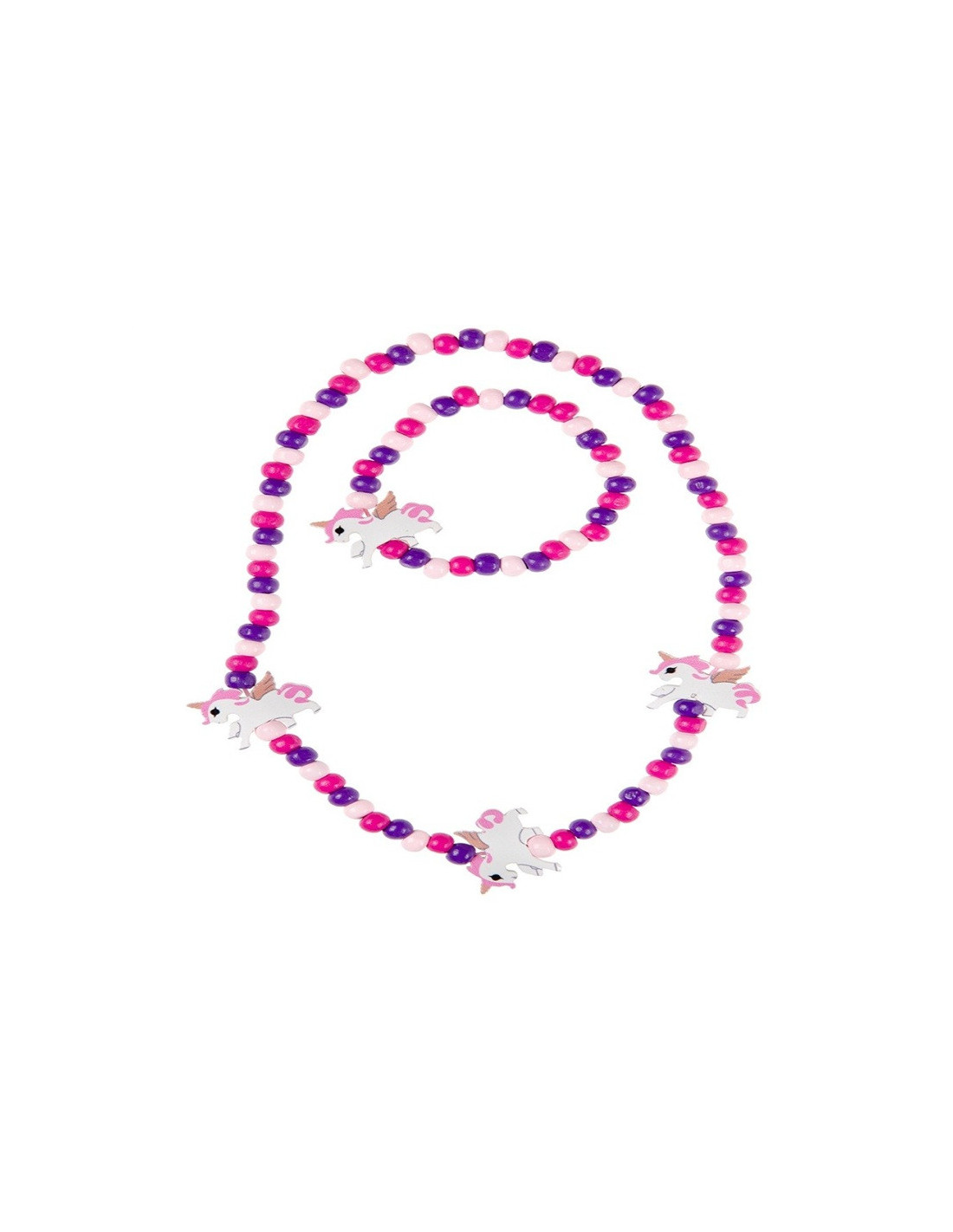 Zestawy drewnianej biżuterii z motywem jednorożca.